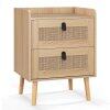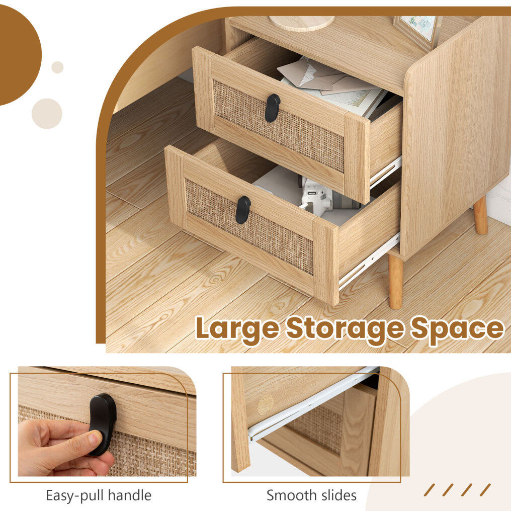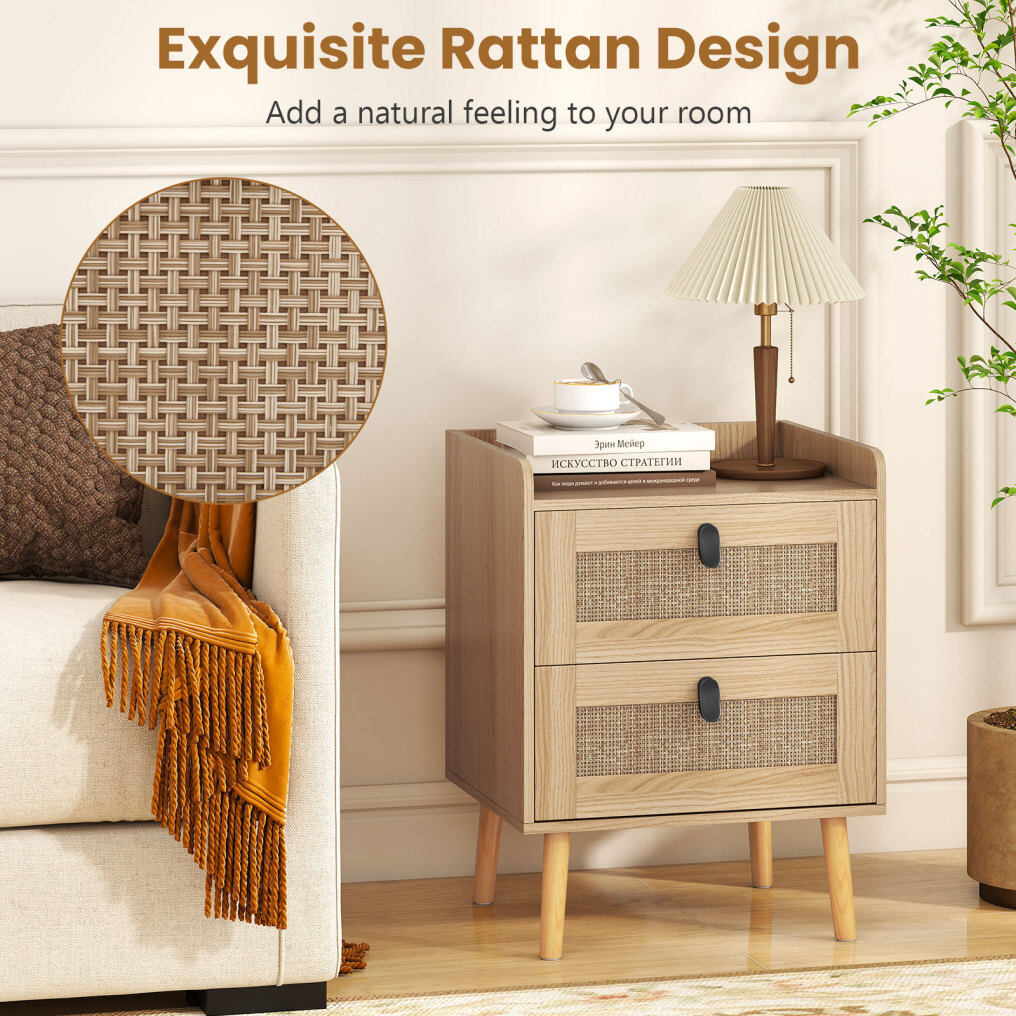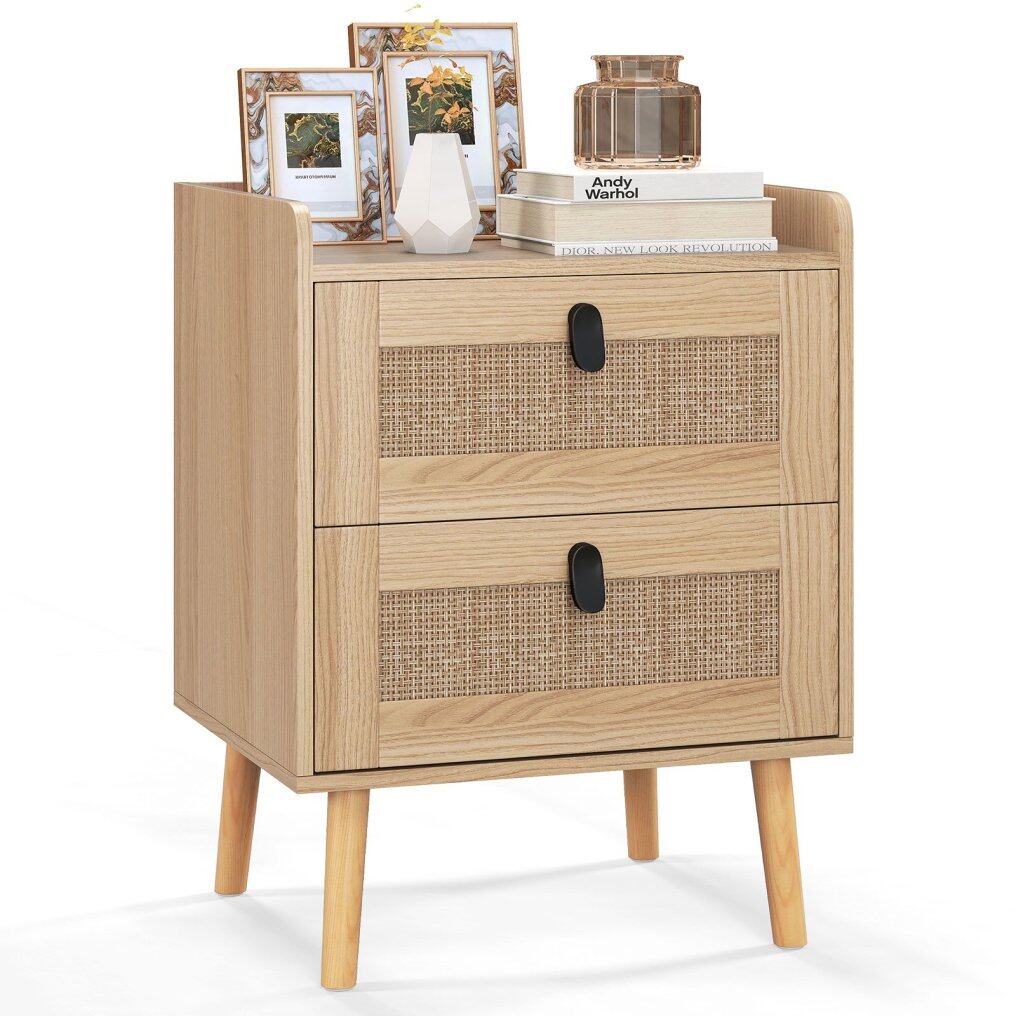 Ample Storage Space: Equipped with 2 large rattan-decorated drawers and a wide tabletop, this white nightstand offers you enough storage space to store your cups, books, charging cable and other necessary items in order. It is worth mentioning that the wide table top with raised edge design, which protects items from falling down.