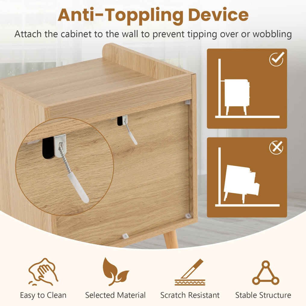 Quality Material and Sturdy Frame: Made of high-quality MDF board, this white nightstand is anti-deform and wear-resistant for long-time use. 4 solid pine wood legs with non-slip foot pads offer good load-bearing and stability for this nightstand. Besides, it comes with an anti-toppling device which can attach the cabinet to the wall to prevent tipping over or wobbling.