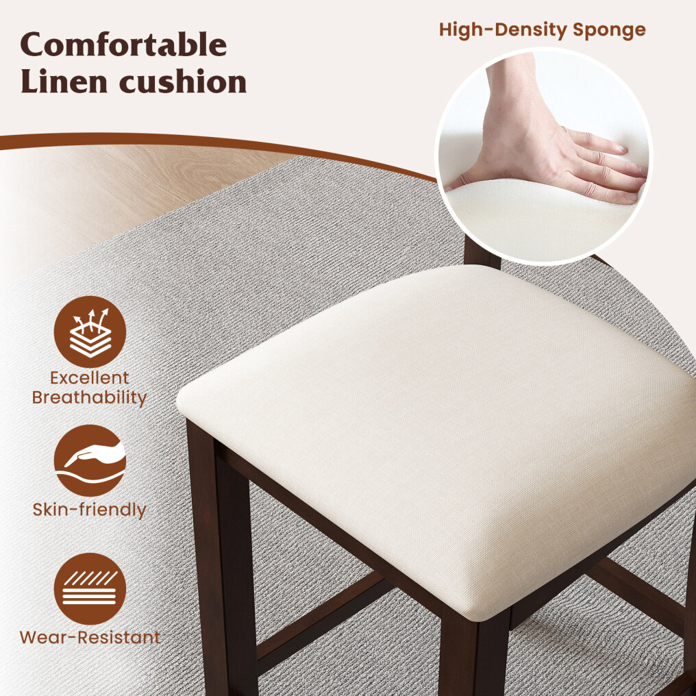 ● Comfortable Linen Cushion: The rubber bar chairs are equipped with cushions made of high-quality linen fabric and high-density sponge, offering excellent breathability and comfort. The linen material is skin-friendly, wear-resistant, and suitable for long-lasting use.