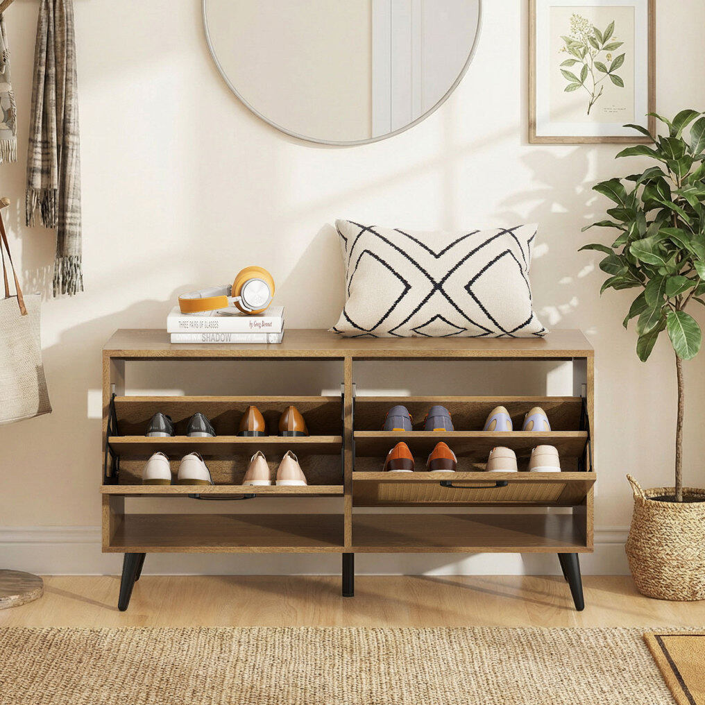 ● Space-Saving Flip Drawers: This shoe cabinet features 2 convenient flip drawers that allow easy access to your footwear while saving space. The flip design eliminates the need for extra clearance, making it perfect for compact entryways and small rooms.