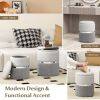 The storage ottoman set of 2 is a modern and versatile addition to your living room, bedroom or lounge. These stylish footrests not only provide comfortable place to rest your feet but also provide practical storage solutions. More, you can use them as extra seating options for guests or as a vanity stool in your bedroom. Hidden storage compartments allow you to keep your space organized and clutter-free. Besides, each ottoman is upholstered in durable linen fabric and filled with high density sponge for more sitting comfort. All in all, the round ottomans combine modern design & functional accent, which blends seamlessly with your existing furniture.