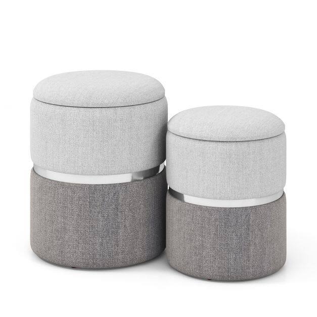 Hidden Storage Space: The round linen ottomans have 32 L and 21 L of storage space. The lids can be easily removed to reveal spacious interior, which is perfect for storing books, toys, blankets, pillows, or household items.