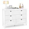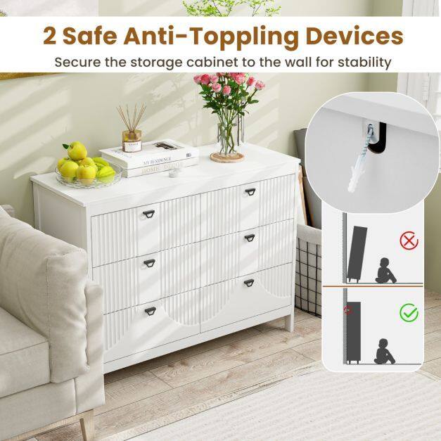 You can greatly enhance home organization with this versatile storage cabinet, featuring 6 spacious pull-out drawers and a generous top surface. Crafted from high quality MDF, this cabinet is perfect for long-time use. What’s more, the reliable 5-point support ensures a solid structure. The high-quality metal slides ensure smooth drawer operation, while the elegant handles provide a sophisticated touch. Additionally, non-slip foot pads protect your floors from scratches and enhance stability. The easy-to-clean, water-proof surfaces ensure low maintenance! Whether used as a bedroom storage chest, buffet cabinet, or office storage solution, this piece effortlessly adapts to various settings. Elevate your storage solutions with this chic and functional storage cabinet!