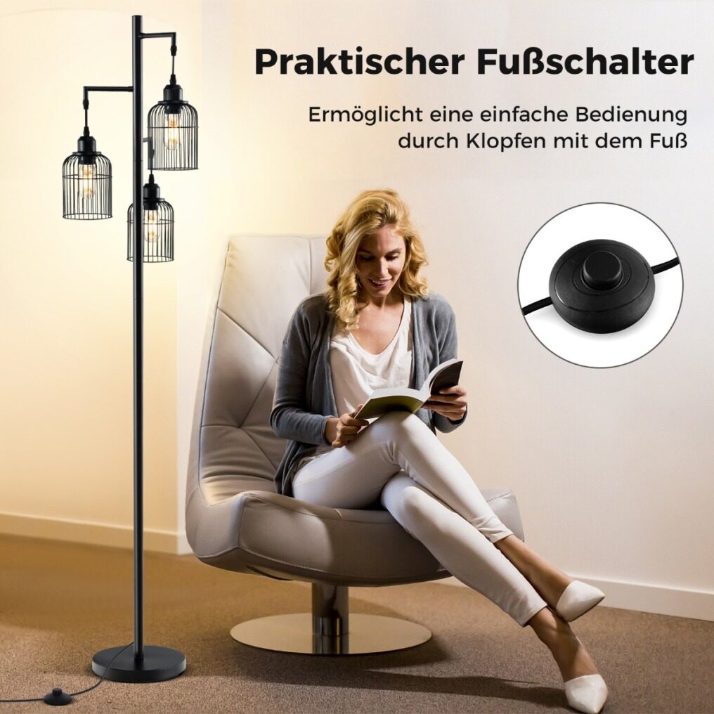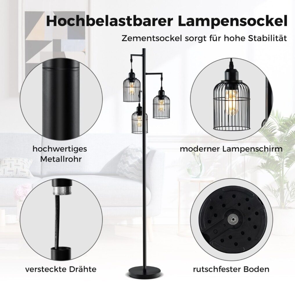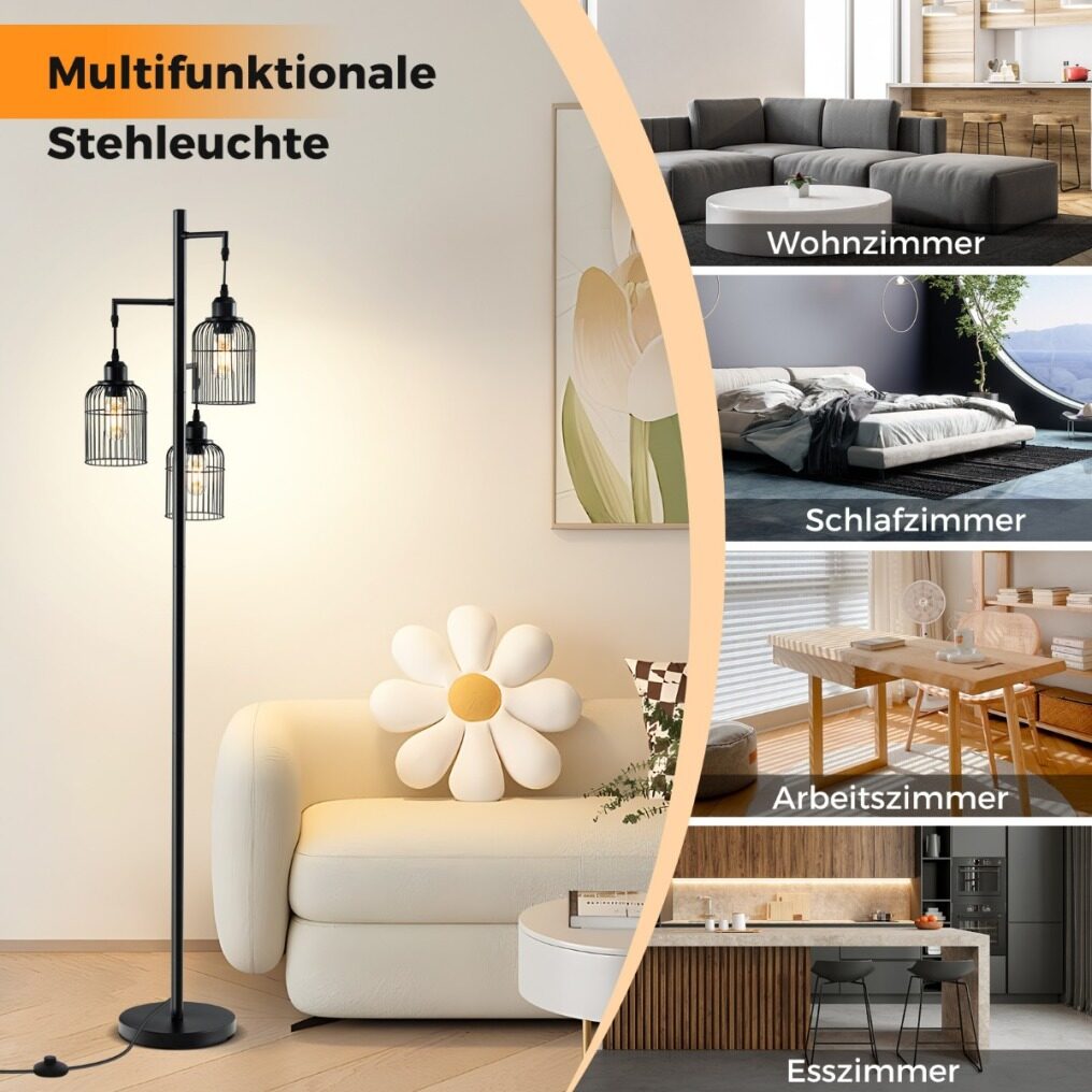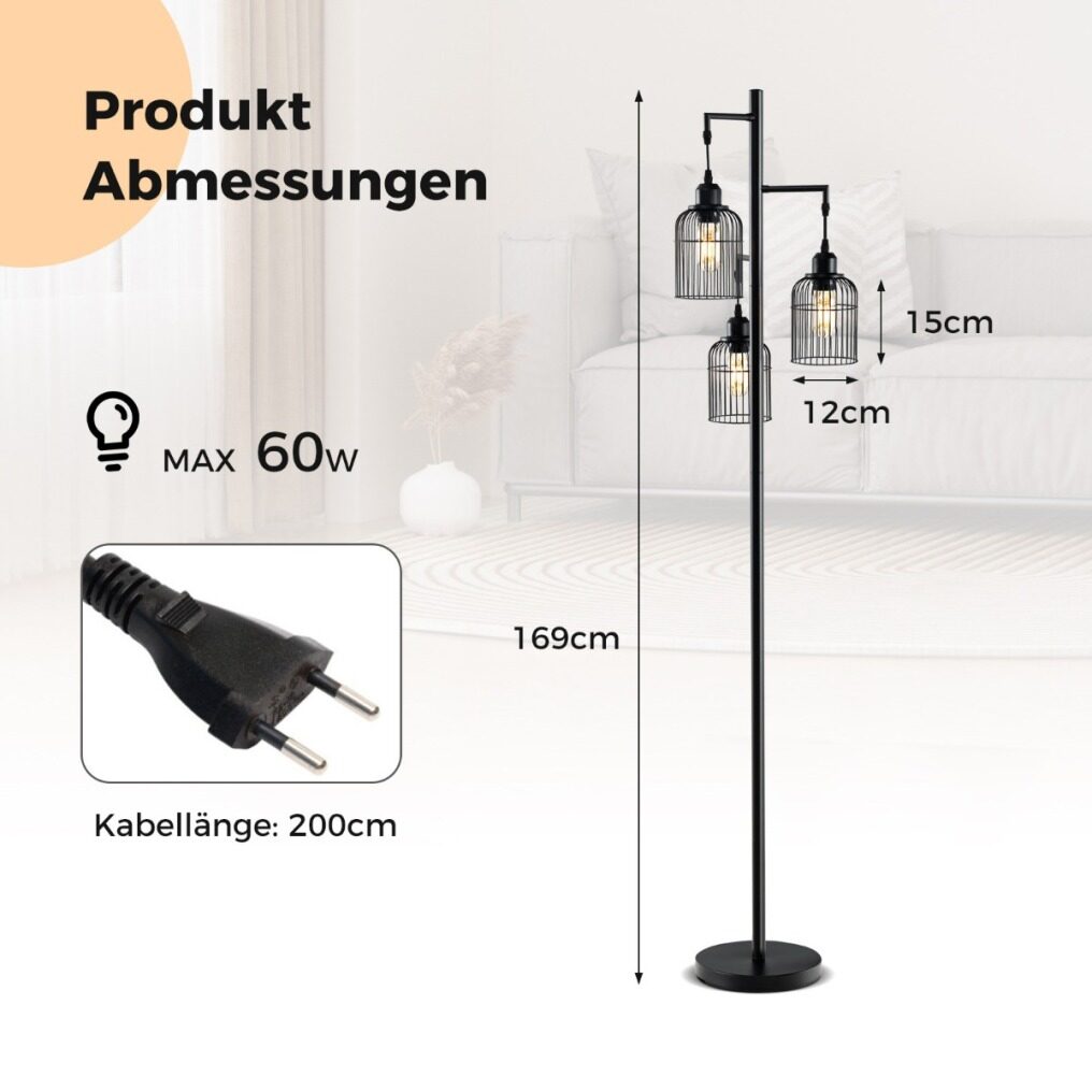Modern Floor Lamp with 3 Lights: This modern floor lamp features 3 cage lampshades that create soft and warm lighting, suitable for various needs such as reading, room lighting and mood lighting. Conveniently, the floor lamp is suitable for any 60W LED bulb, energy saving bulb or incandescent bulb. Note: The bulbs are not included.