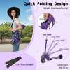 Equipped with a 3-position adjustable handlebar, this kids scooter is perfectly suited for different heights. The light-up wheels shine with every movement, providing more fun and visibility. Plus, they are made of wear-resistant PU for long-lasting use. Safety is ensured with a stable kickstand for upright parking and a reliable rear brake for quick and safe stopping. Plus, the foldable design and included shoulder strap make it easy for both parents and kids to carry. With cute patterns that all kids will love, this scooter is the perfect gift for little ones.