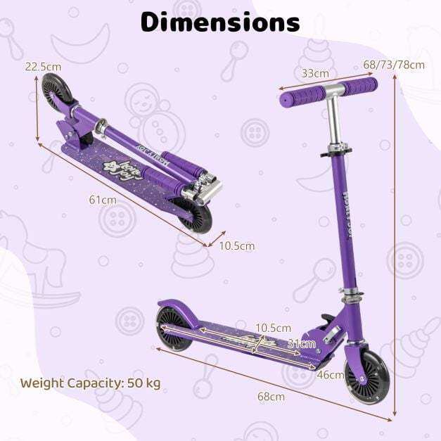 Grows with Your Child: The handlebar of this scooter has 3 adjustable heights (68/73/78 cm), making it suitable for children of different ages. The non-slip and foldable handles ensure a secure grip and allow for easy storage.