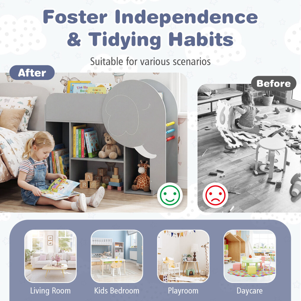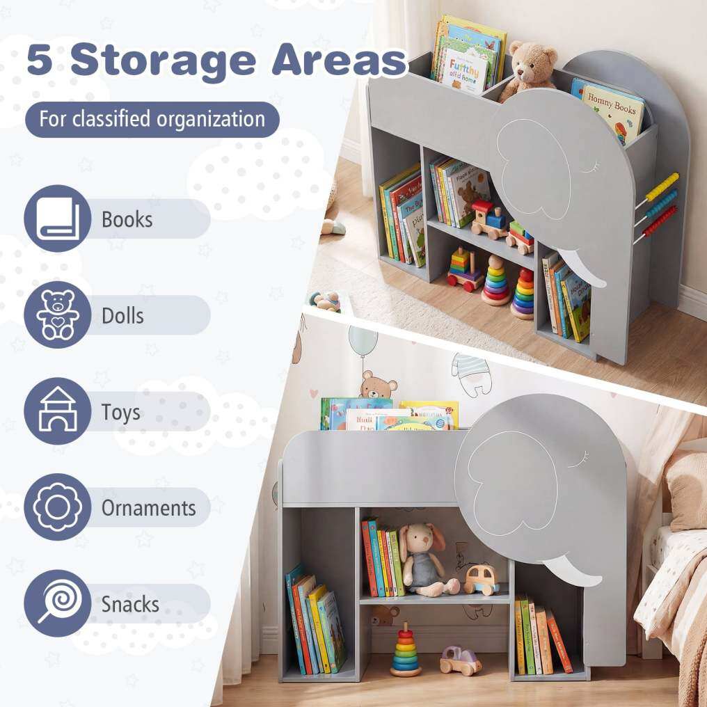 ● Adorable Elephant-Shape Design: This cute bookshelf adds a playful and inviting touch to any space, making organization fun for kids. This bookshelf instantly brightens up your living room, kids bedroom, playroom, or daycare centers.