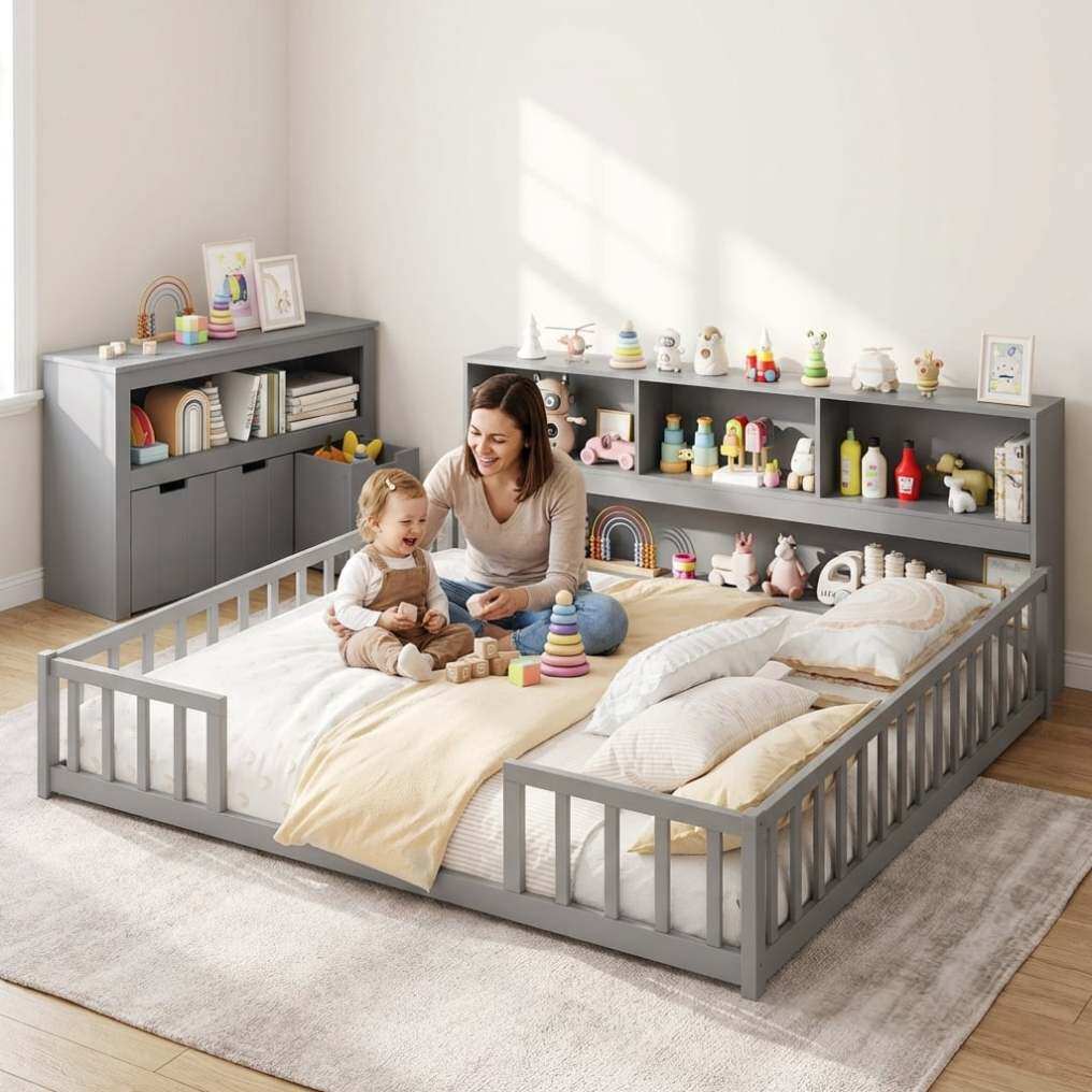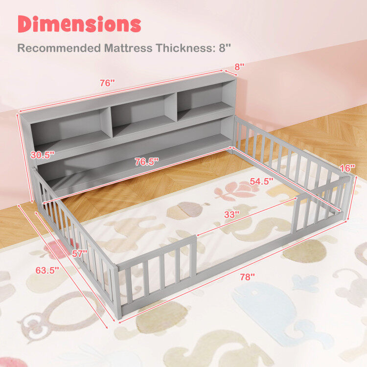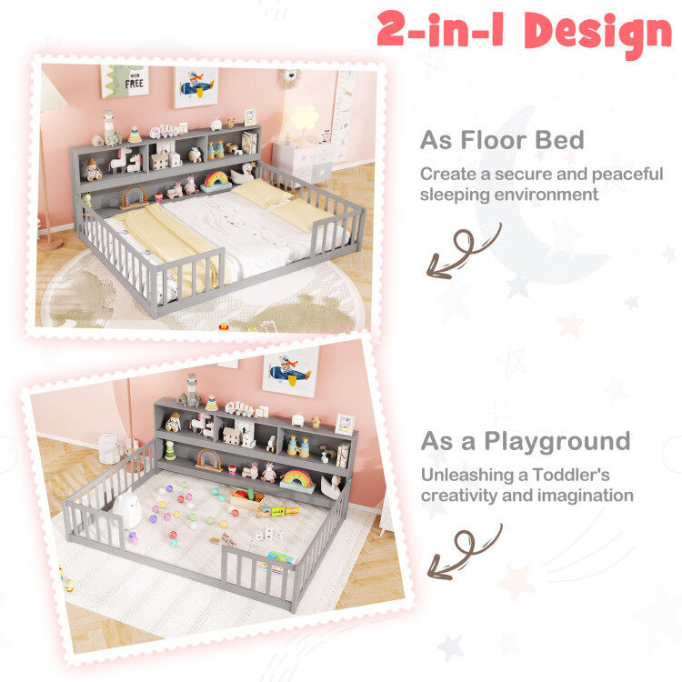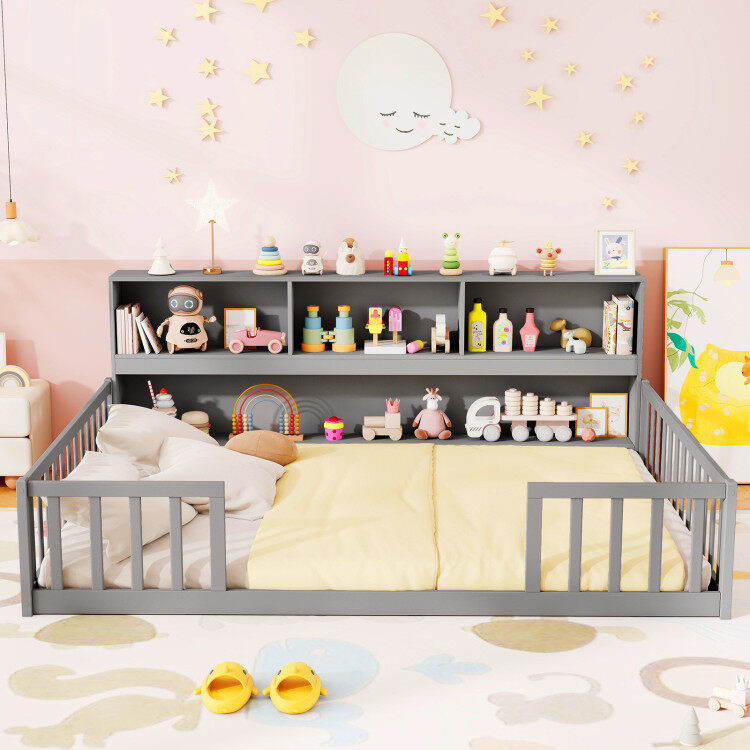 Montessori Twin Floor Bed with Bookcase