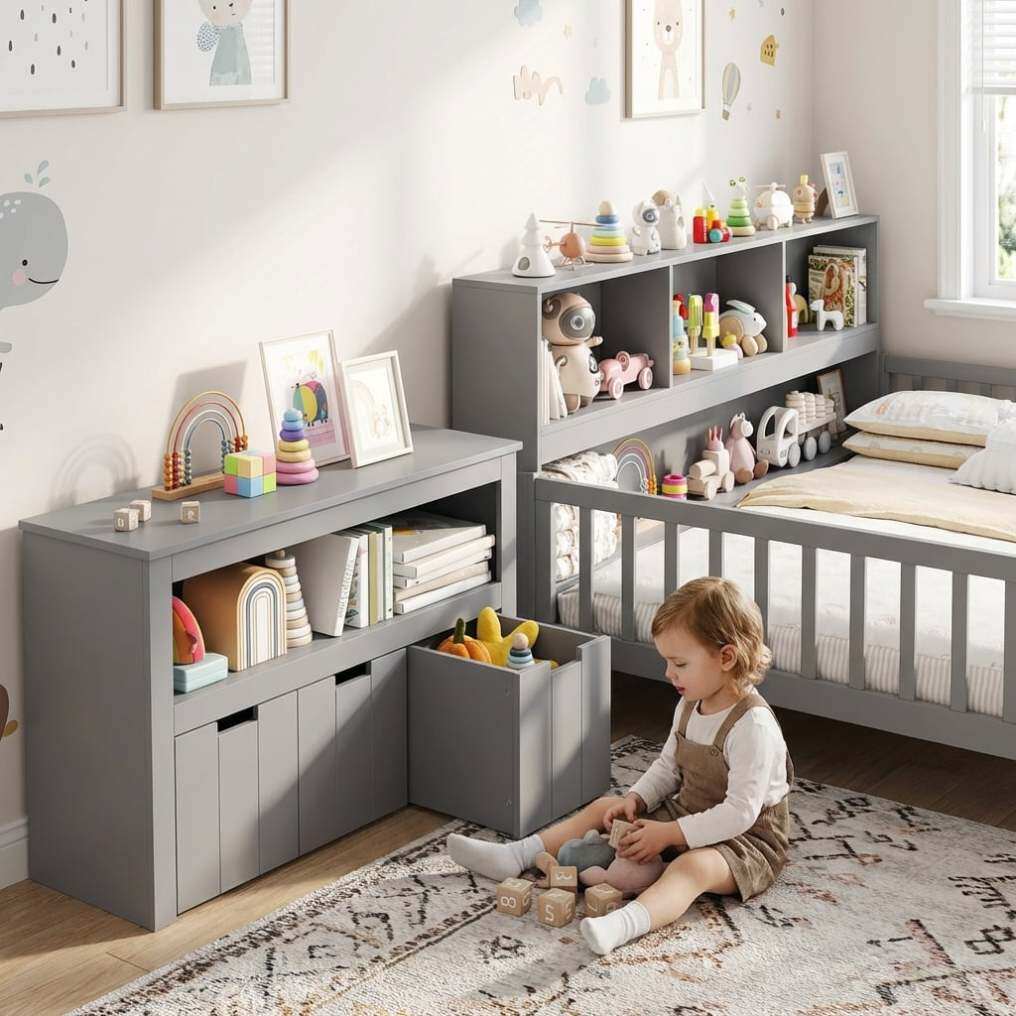 • Built-in bookcase keeps favorite books and toys within easy reach