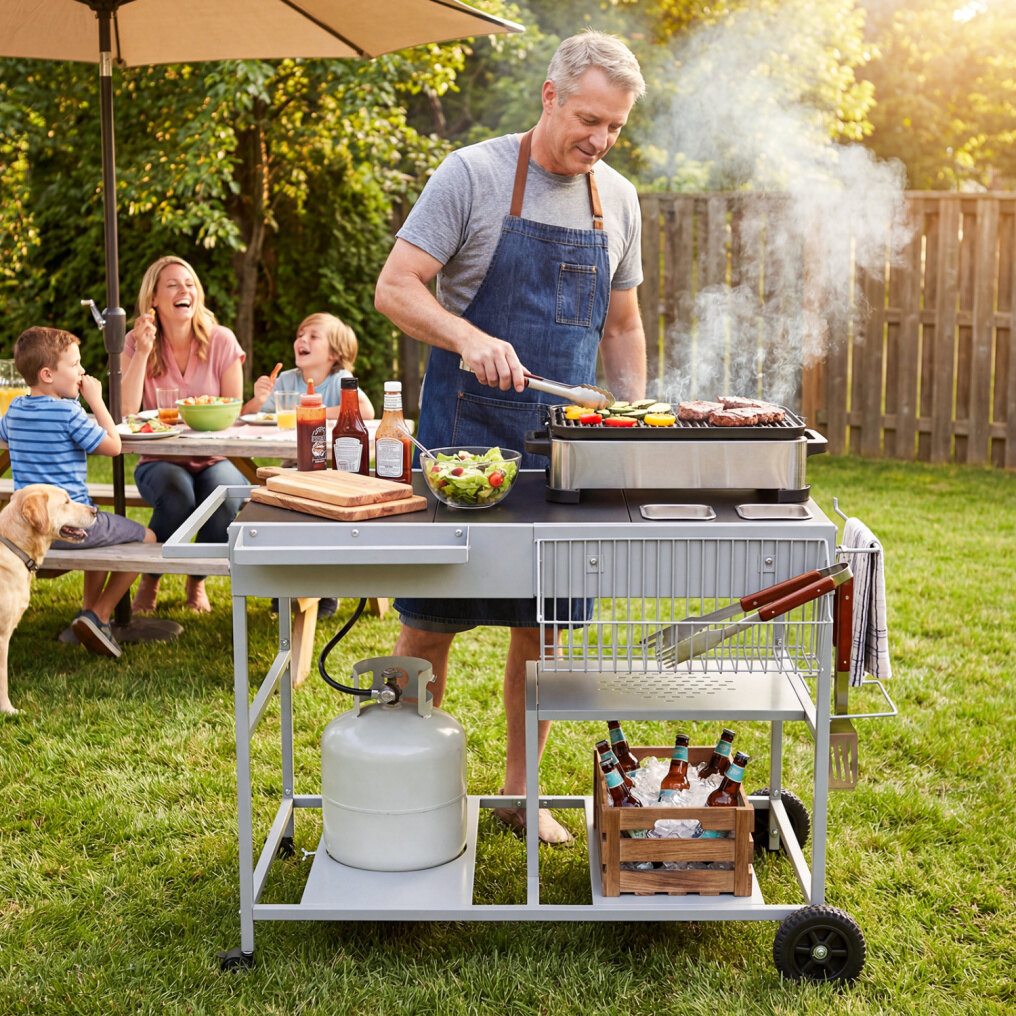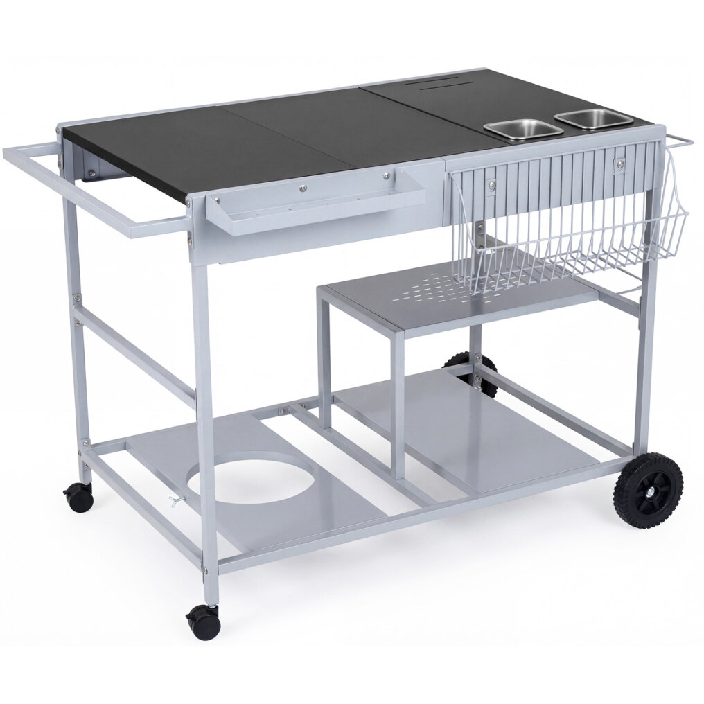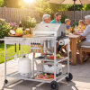 ● Grill with Order & Efficiency: Keep your cooking area neat and efficient with this grill prep cart. It includes 2 condiment caddies, a tissue holder, a garbage holder, a side storage rack, a wire rack, and 2-tier storage shelf, helping you organize ingredients and tools for smoother outdoor grilling.