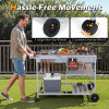 ● Hassle-Free Movement: This rolling grill cart features 2 6-inch large non-slip wheels and 2 lockable universal wheels. Move the cart effortlessly around your patio or yard, then lock it securely in place. The convenient handle also works perfectly for pushing or hanging towels.