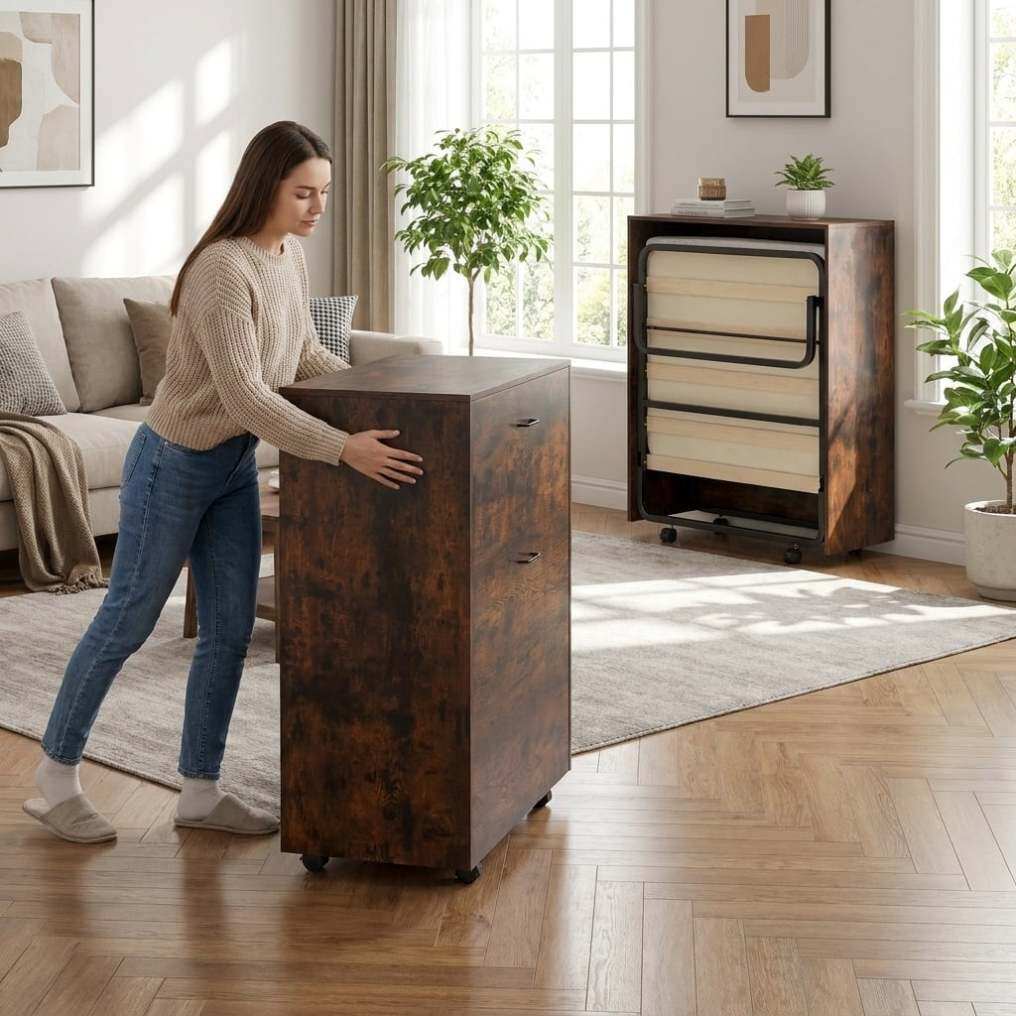 ● Instant Foldable Bed for Flexible Living: Transforms quickly from a compact storage cabinet into a comfortable cot-size bed, making it ideal for small apartments, rentals, and multi-use spaces.