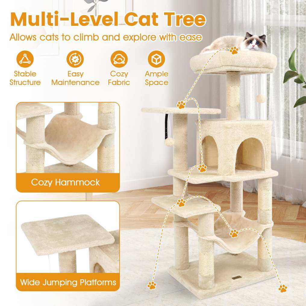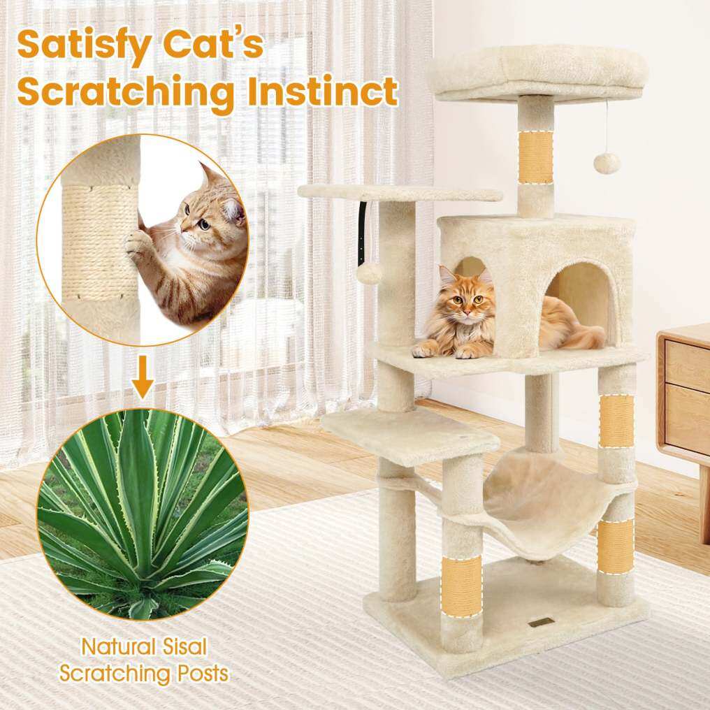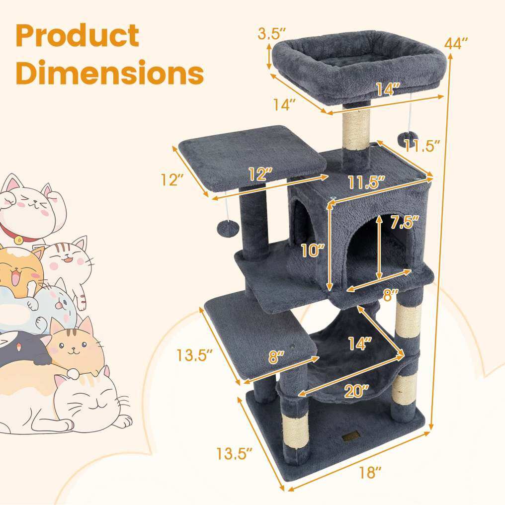 ● More Fun Spots: Featuring multiple climbing platforms, this cat tower satisfies your cat's natural instincts. Plus, a roomy 2-door condo provides a cozy resting place, while a fluffy hammock allows your cat to swing comfortably.