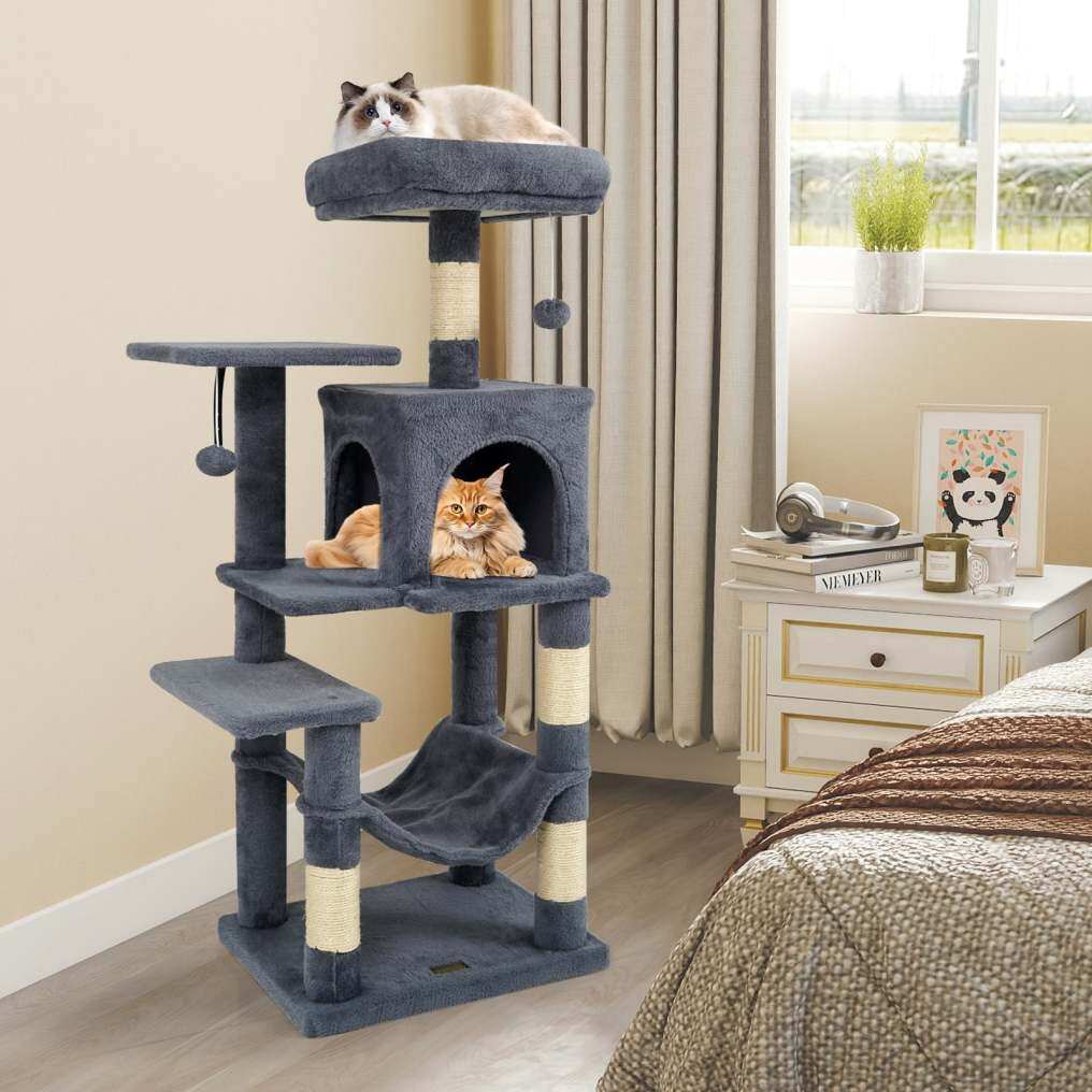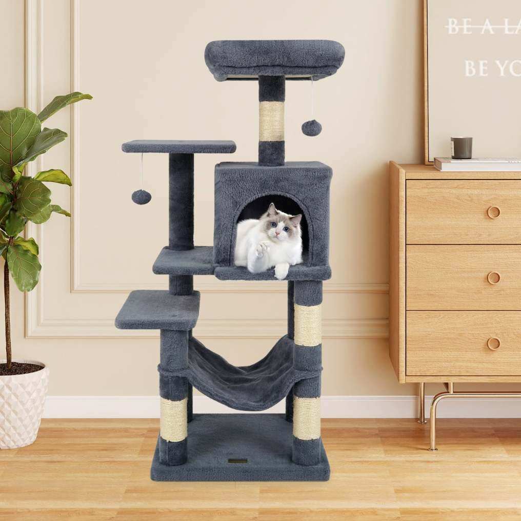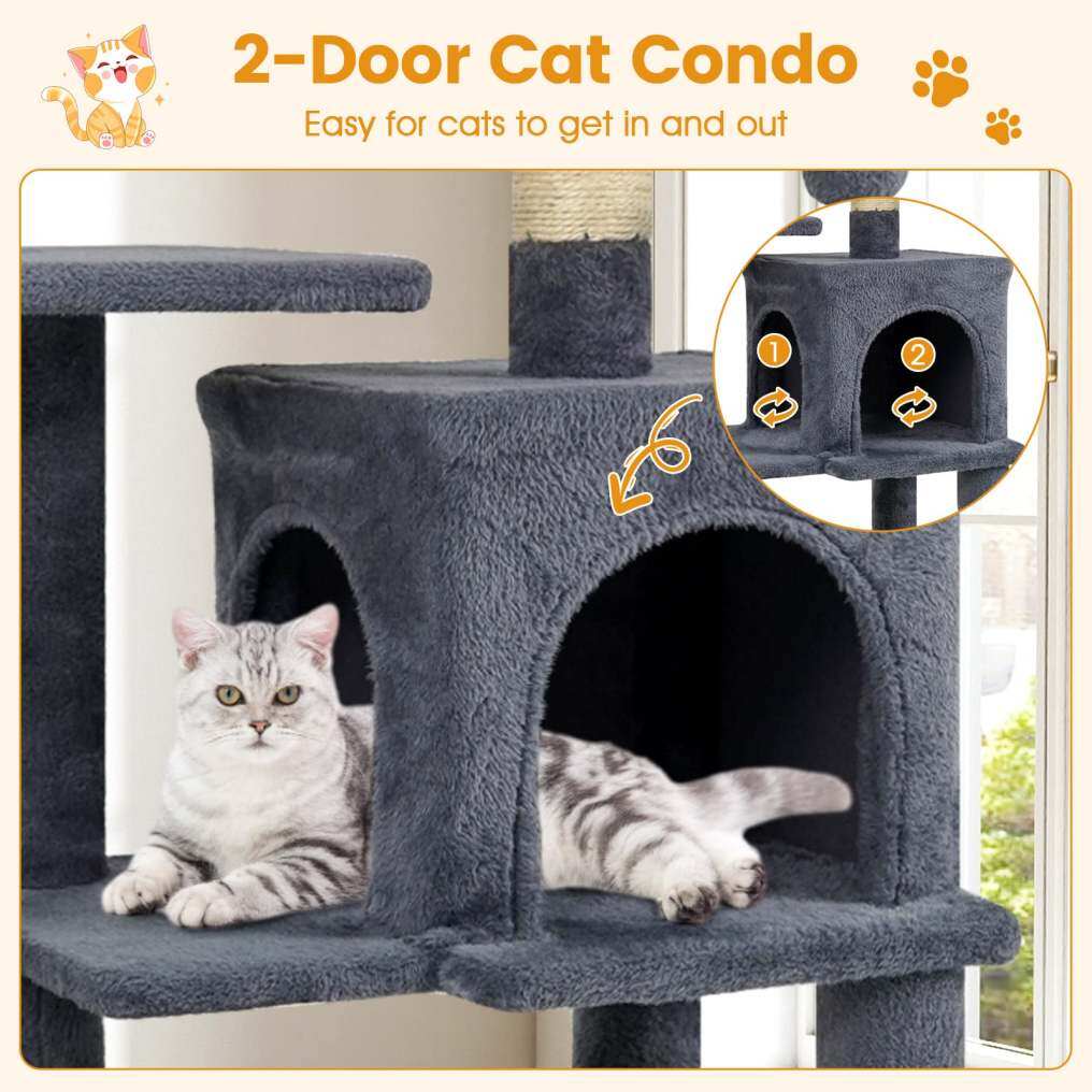 ● More Fun Spots: Featuring multiple climbing platforms, this cat tower satisfies your cat's natural instincts. Plus, a roomy 2-door condo provides a cozy resting place, while a fluffy hammock allows your cat to swing comfortably.