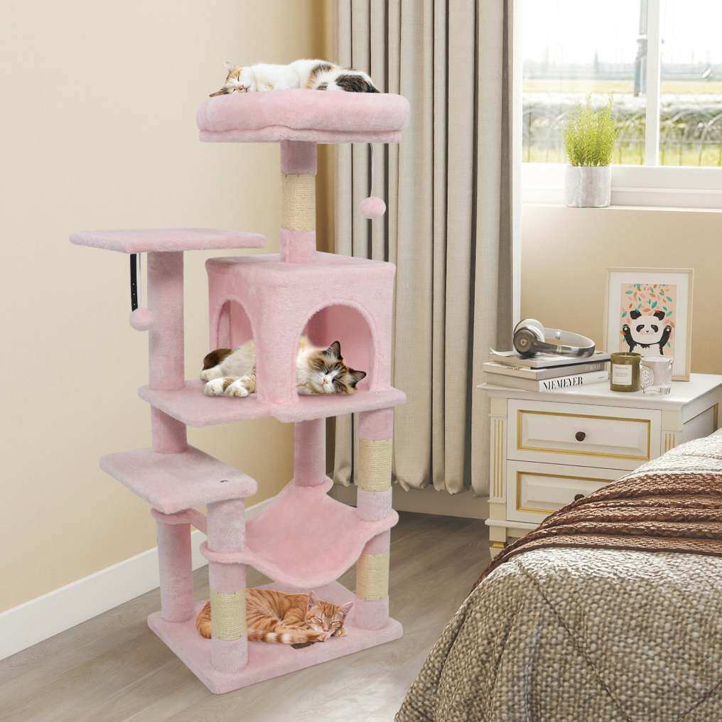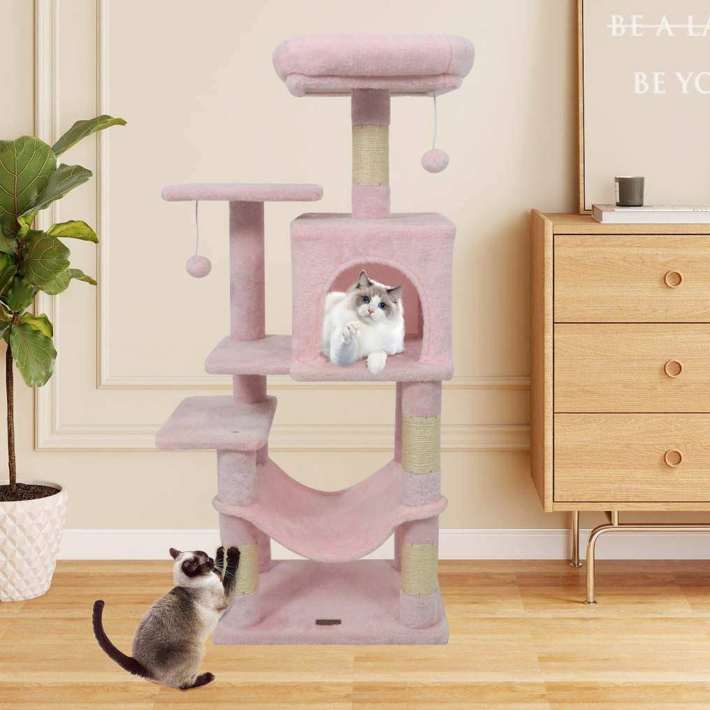 ● More Fun Spots: Featuring multiple climbing platforms, this cat tower satisfies your cat's natural instincts. Plus, a roomy 2-door condo provides a cozy resting place, while a fluffy hammock allows your cat to swing comfortably.