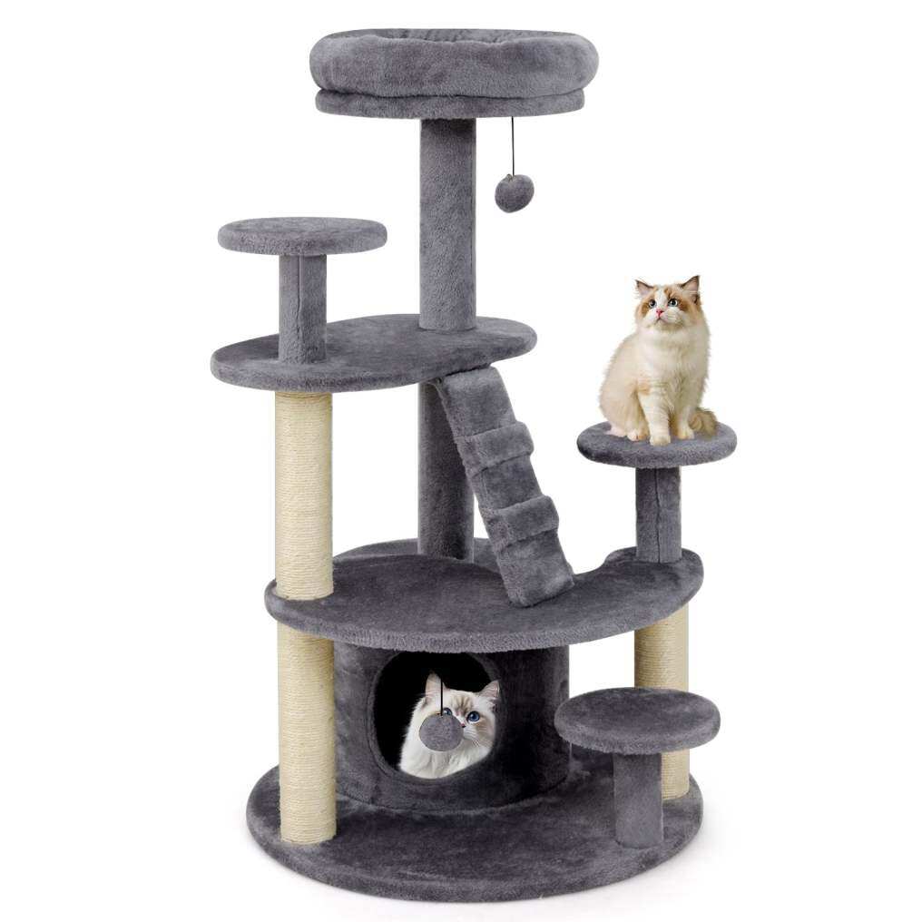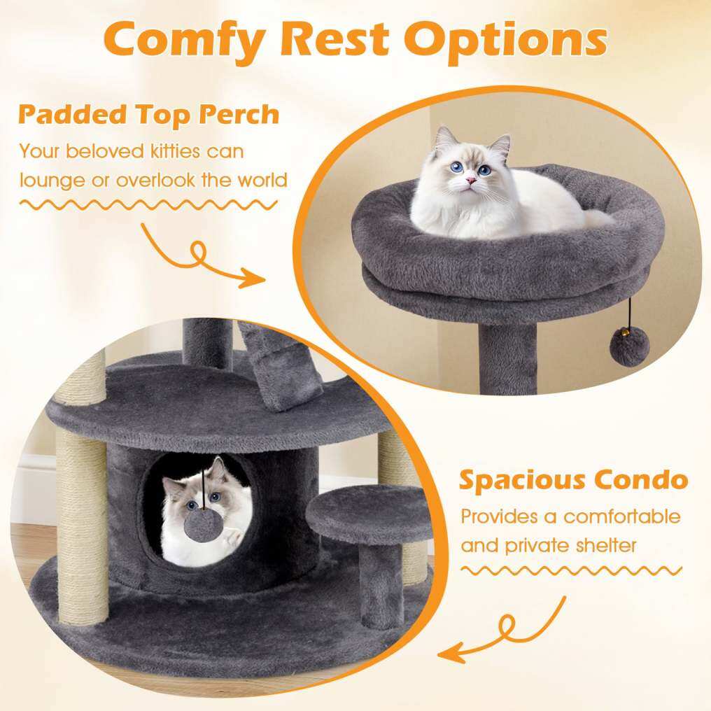 Satisfying Natural Instincts : The multi-level cat tree features fully wrapped scratching posts that not only satisfy your cat's instinctive scratching needs but also protect your furniture from damage. Additionally, the hanging toy with a bell is ideal for keeping your cat busy and active.