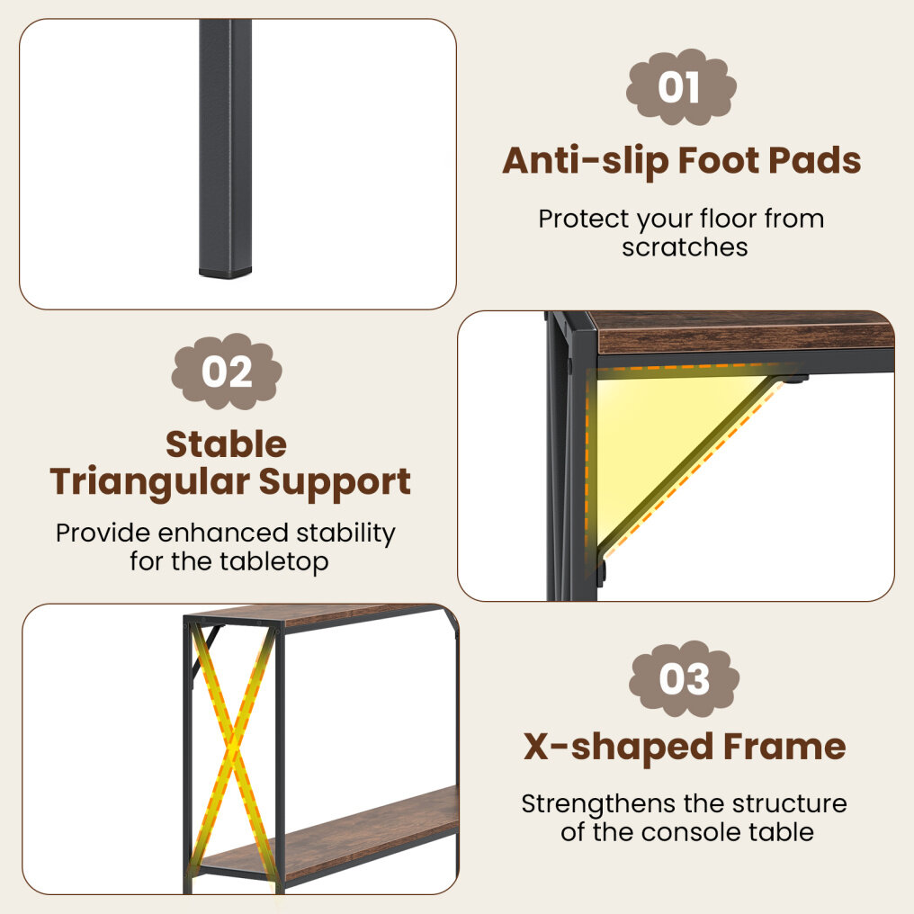 ● Enhanced Stability: With its sturdy metal frame, 2 triangular bars and X-shaped sides, the entryway table ensures years of reliability. For safe use in busy households, it is also equipped with anti-toppling devices and non-slip foot pads.