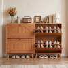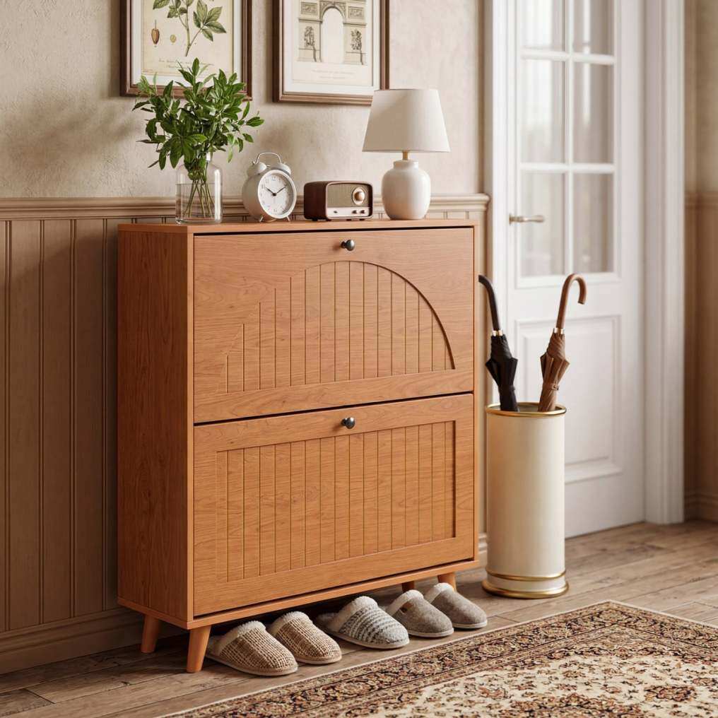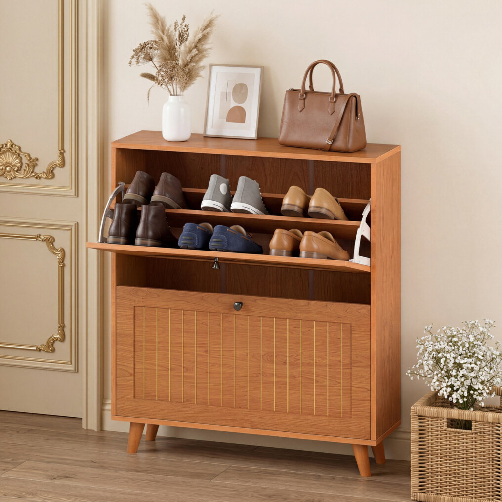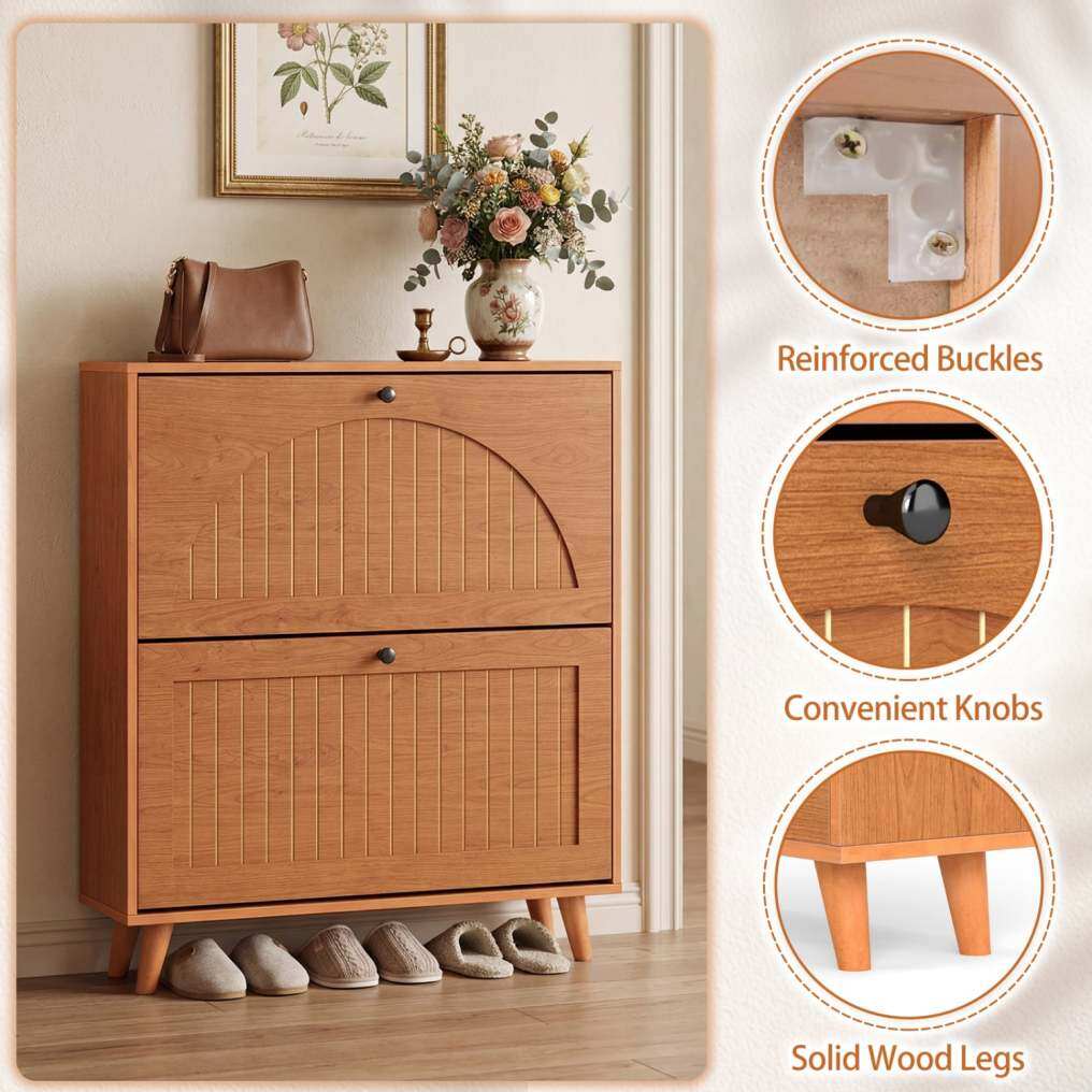 ● Built-With-Care Details: Every detail of this narrow shoe cabinet is designed to improve the daily experience, from the convenient knobs that ensure a comfortable grip to the reinforced buckles that enhance overall stability. Additionally, the solid wood legs complete the look with sturdy, elevated support.