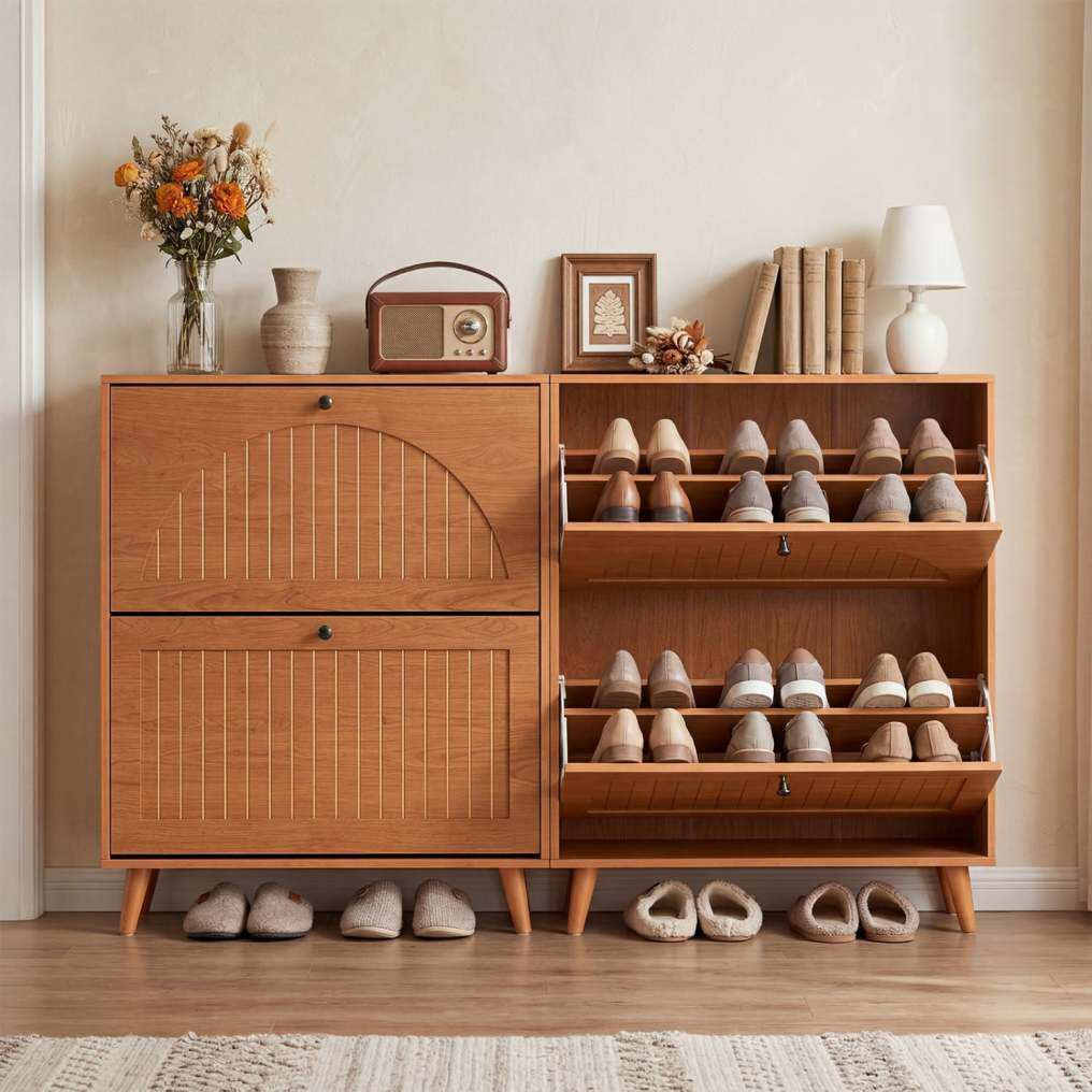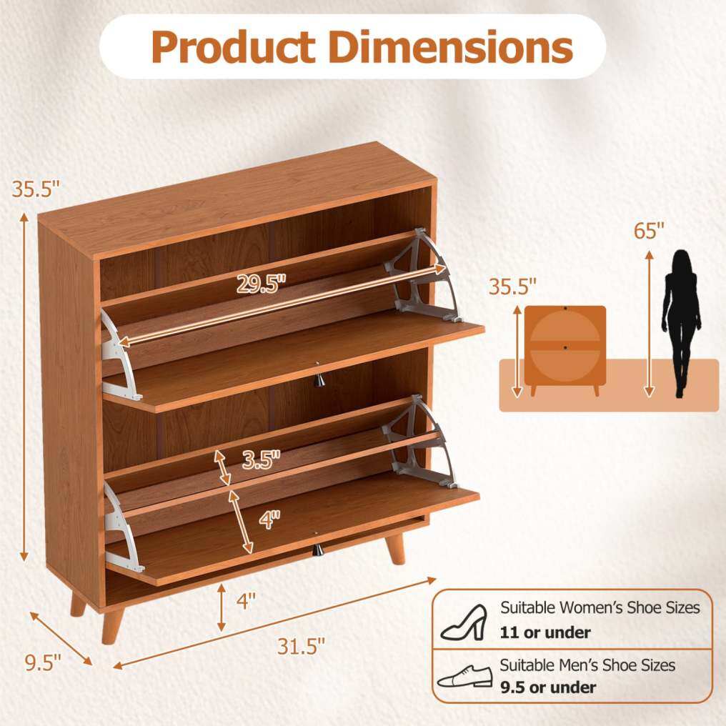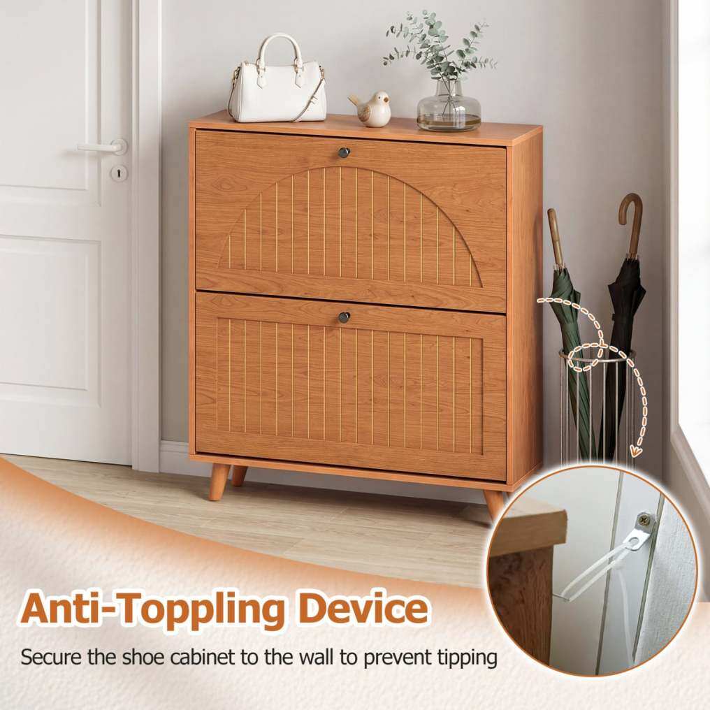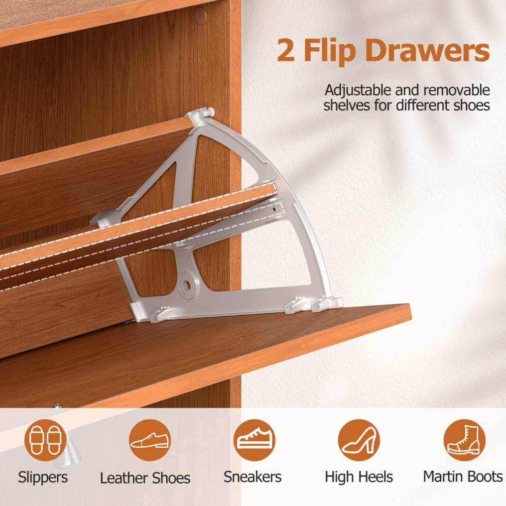 ● Reliable Anti-Tip Design: The hidden shoe organizer is equipped with an anti-toppling device that offers an extra layer of safety for everyday use. Once secured to the wall, the shoe cabinet stays more stable and is better protected against tipping.