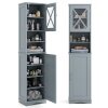 Spacious Storage Options: This tall bathroom cabinet offers sufficient storage for tight space. The 2 open compartments are suitable for displaying decorative items, or housing frequently used items, while the 2 enclosed cabinets are ideal for storing towels, toiletries, cleaning supplies, and extra bathroom products.