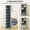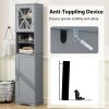 Featuring 2 open compartments and 2 enclosed cabinets, it offers ample space for your daily essentials. The floor cabinet also includes 5 adjustable and removable shelves, allowing for customization to fit items of various sizes. Crafted from premium acrylic panel and MDF with water-resistant paint, it ensures long-lasting durability. Additionally, the anti-toppling device enhances stability and safety. Its compact design effortlessly fits into narrow corners, making it ideal for bathrooms, living rooms, kitchens, home offices, and more. Upgrade your space with this practical corner floor cabinet.