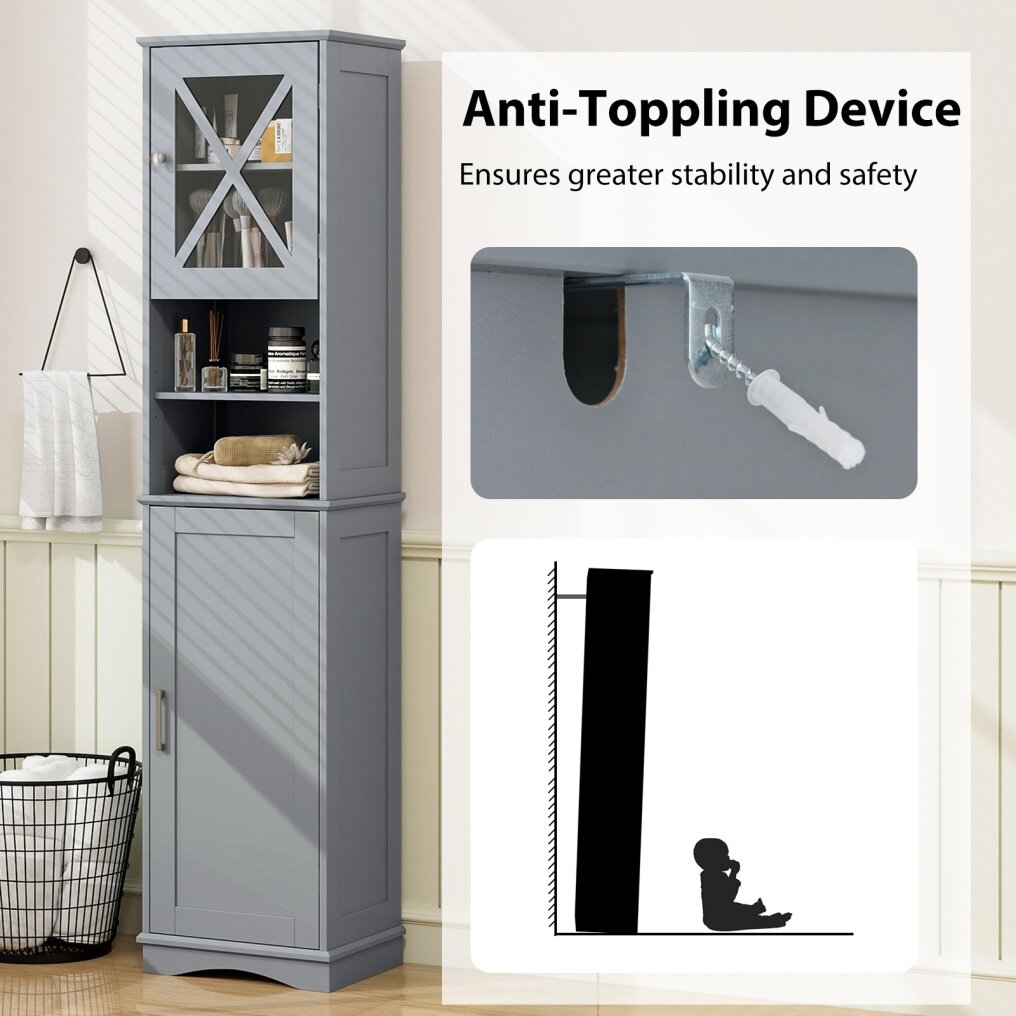 Reliable Construction: Crafted from premium acrylic panel and MDF with water-resistant paint, the bathroom floor cabinet is built to last. Additionally, the anti-toppling device provides greater stability and safety, preventing accidental falls for worry-free use.