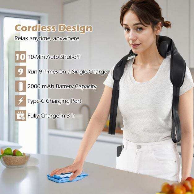 ● Cordless Design: Equipped with a built-in 2500 mAh battery and a convenient Type-C charging port, this electric massage machine lets you enjoy soothing massages anytime and anywhere without the hassle of wires. Enjoy approximately 1.5 hours of massage time on a full charge of about 3 hours.