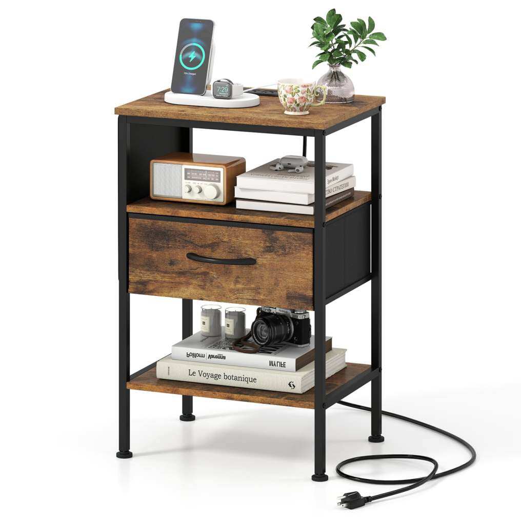 ● Abundant Storage Space: With a spacious cabinet top, open compartment, side pocket and a roomy folding drawer, the industrial end table provides sufficient storage space and accommodates everything from lamps and photo frames to clothes and accessories, keeping your space uncluttered and organized.