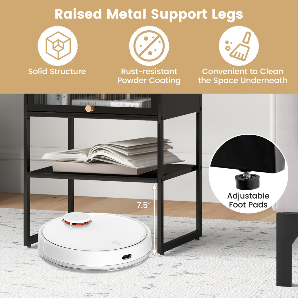 ● Upgraded Flip-up Door: The nightstand features a visible upward-opening door that can help you quickly find what you need and prevent dust. The flip-up design allows for more storage convenience without occupying horizontal space.