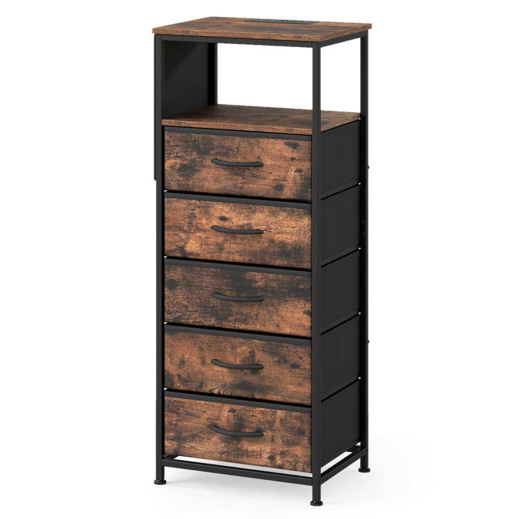 ● Abundant Storage Space: With a spacious cabinet top, open compartment, side pocket and 5 roomy folding drawers, the industrial end table provides sufficient storage space and accommodates everything from lamps and photo frames to clothes and accessories, keeping your space uncluttered and organized.