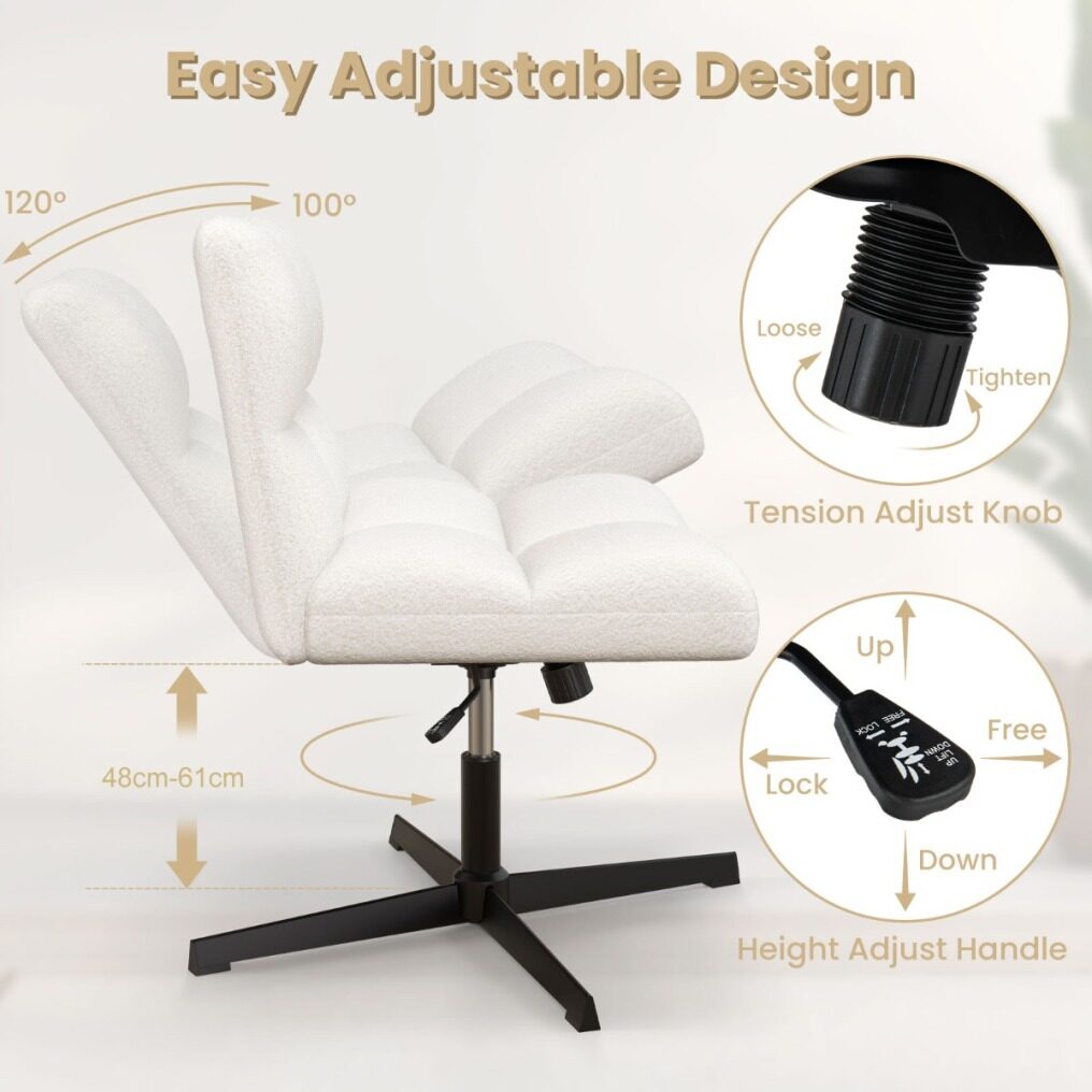 ● Comfortable Cross-legged Chair: This office chair comes with a wide seat that allows for cross-legged sitting. The imitation lamb fleece offers soft and smooth touch, which brings a luxurious and comfortable seating experience.
