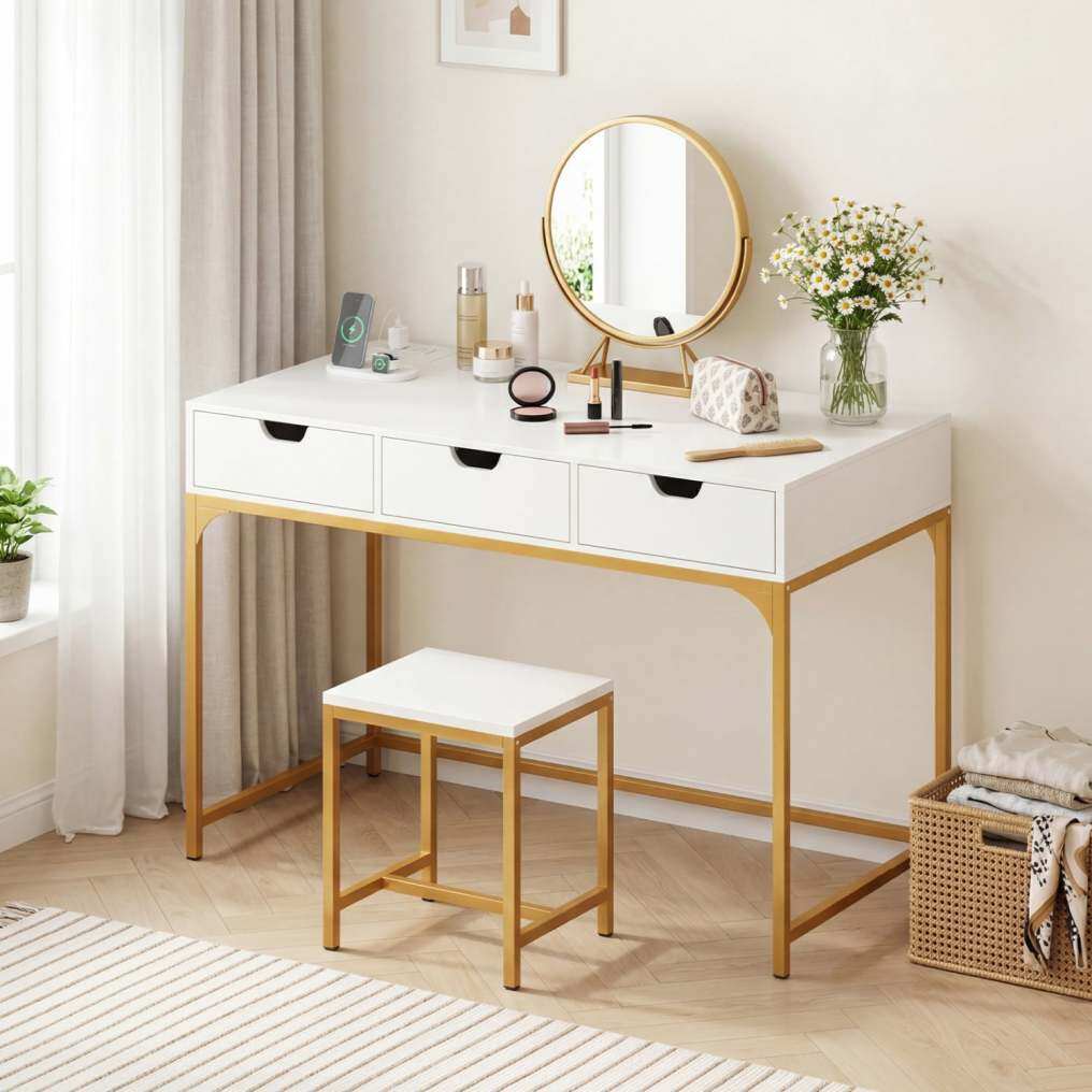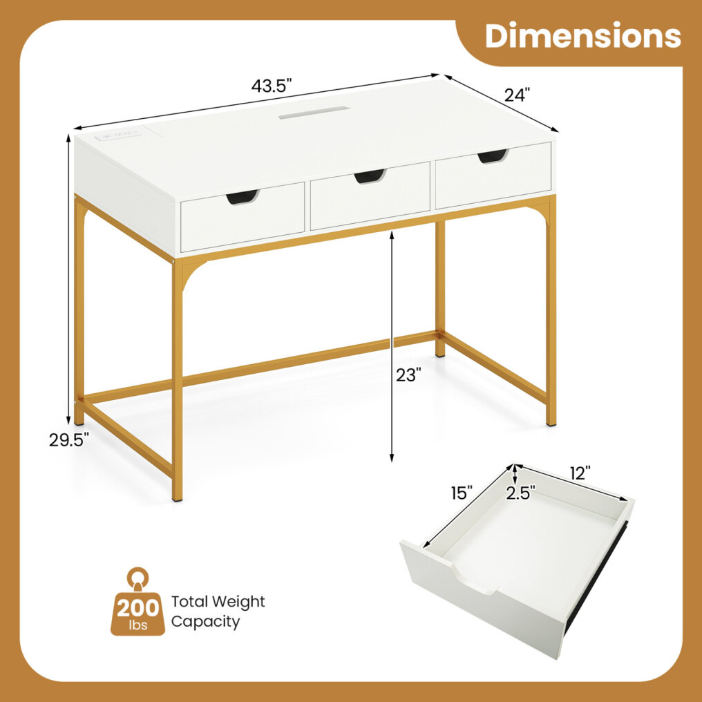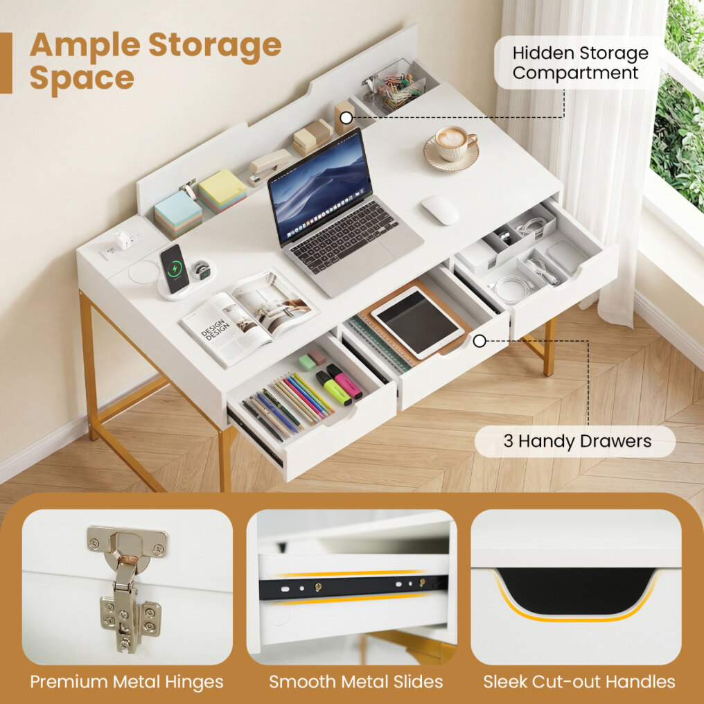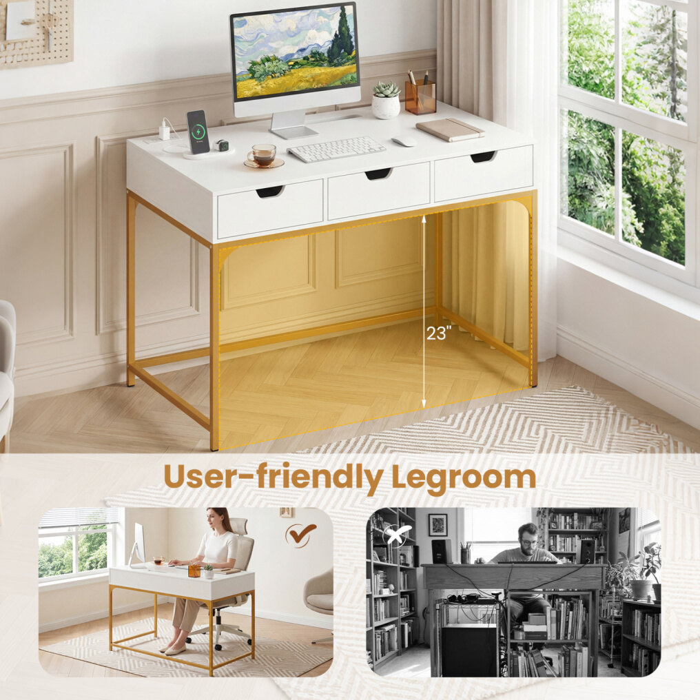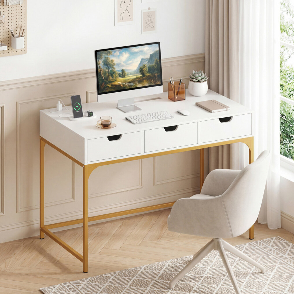 ● Contemporary Styling: The writing desk's clean lines and sleek finish offer a versatile aesthetic that elevates any room, from a professional home office to a chic bedroom vanity. Its modern appeal makes it the perfect writing desk with charging station to complement contemporary decoration.