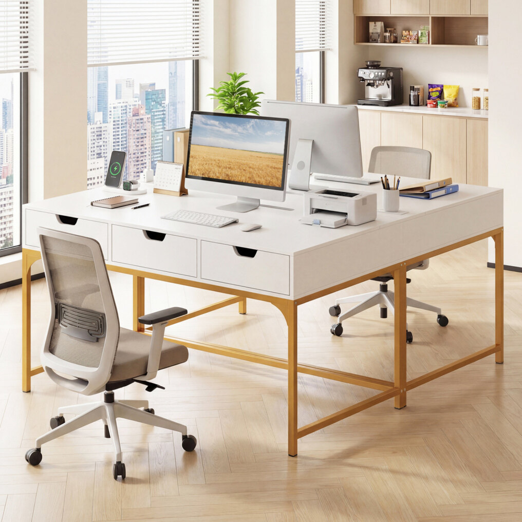 ● Versatile & Hidden Storage: Maximize your organization with three spacious storage drawers for everyday supplies, complemented by a secret hidden compartment perfect for securing sensitive documents or clutter. As a versatile 3-drawer office desk, it ensures your work surface stays pristine and tidy.