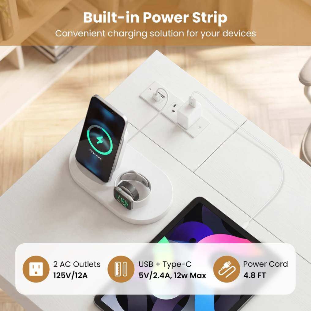 ● Integrated Power Station: Never search for an outlet again with this office desk's built-in corner charging station, which includes 2 AC outlets, a USB port, and a Type-C port to power all your devices simultaneously. This feature makes it the ideal charging solution for a cable-free workspace.