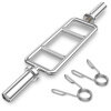 The Olympic triceps bar is made from heavy-duty galvanized steel tubes for trust-worthy durability and sturdiness. The solid steel sleeves of the weight bar have a diameter of 5cm and a length of 16cm, allowing you to load up heavy weight plates and push your limits. Plus, there are 2 spring collars to securely fasten the weight plates, ensuring high safety during your training. With a maximum weight capacity of 700 lbs/ 320 kg, you can trust that this Olympic triceps bar is built to withstand even the toughest workouts. Besides, with 2 anti-slip and easy-to-grip diamond textured knurled handles, you can perform a wide range of exercises that target different parts of your body.