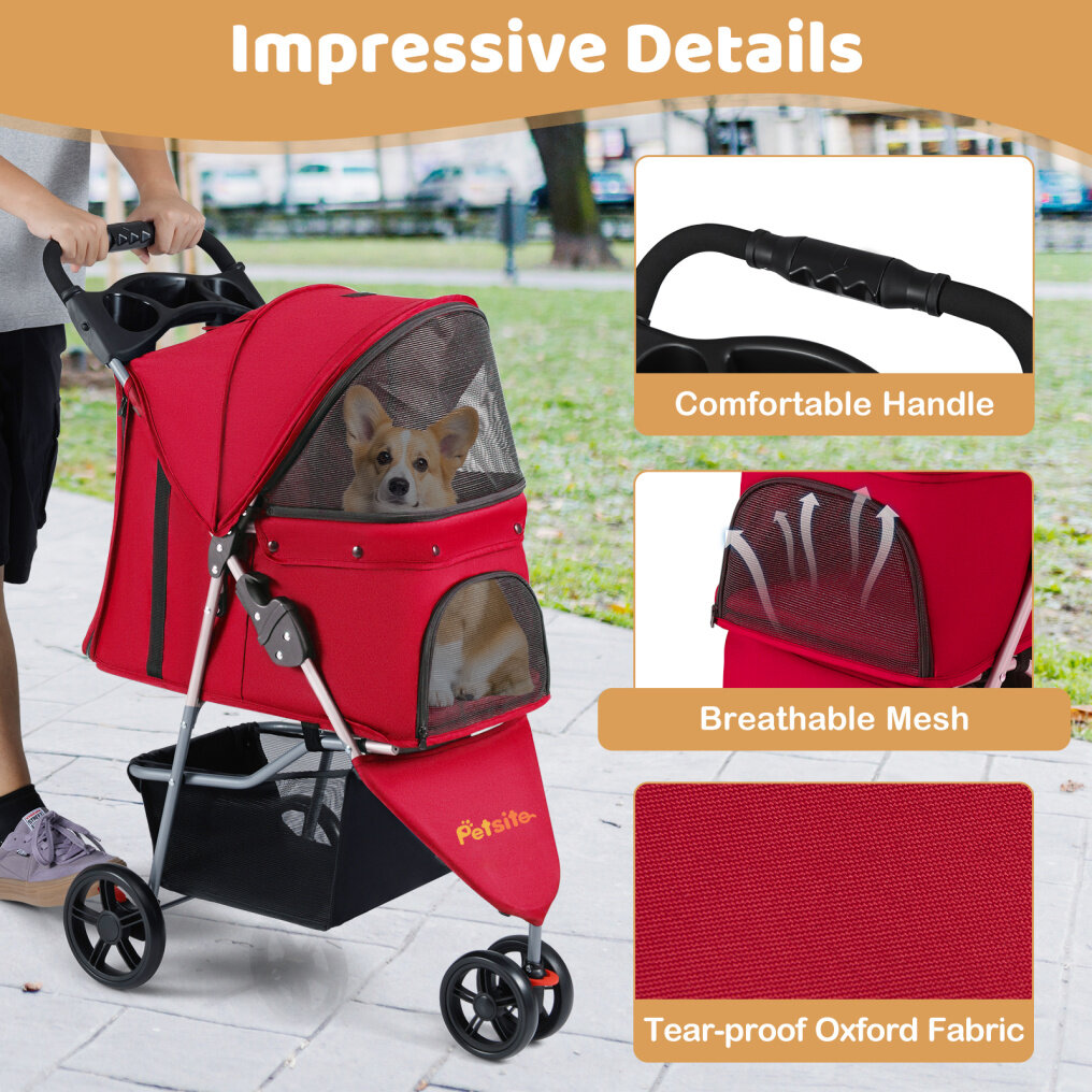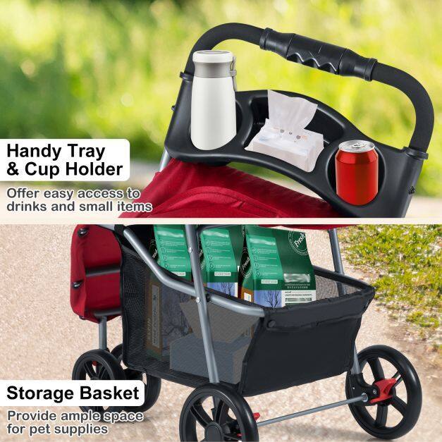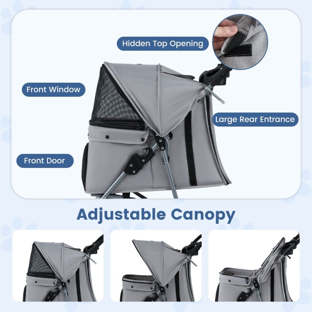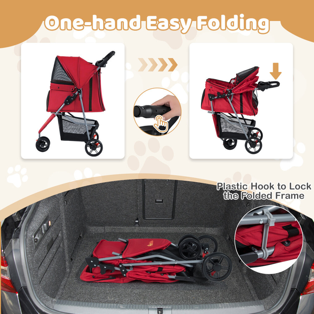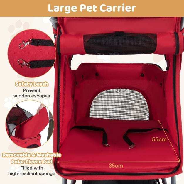 ●Portable Folding Structure: The foldable cat stroller utilizes a user-friendly, one-handed folding system, collapsing effortlessly and requiring minimal storage space. Its compact fold makes it an excellent travel companion, perfect for car trips or fitting into small home storage areas.