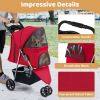 ●Smooth & Flexible Mobility: Equipped with shock-absorbing front wheel, the dog stroller can handle a variety of surfaces. Brakes on the rear wheels ensure secure stops, and the front swivel wheel can be locked in place for directional movement as needed. The padded handle offers a comfortable grip for effortless steering.