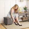 With generous hidden storage of 55L, this storage ottoman provides a stylish way to keep your space uncluttered. Moreover, the flip-top lid is perfect for serving drinks or snacks. The comfortable padded surface features skin-friendly linen and supportive 2.5cm foam padding. Sturdy rubber wood legs can handle up to 150kg and have protective foot pads. Its multifunctional design allows for use as a footstool, shoe changing stool/bench, or foot rest/end of bed bench.