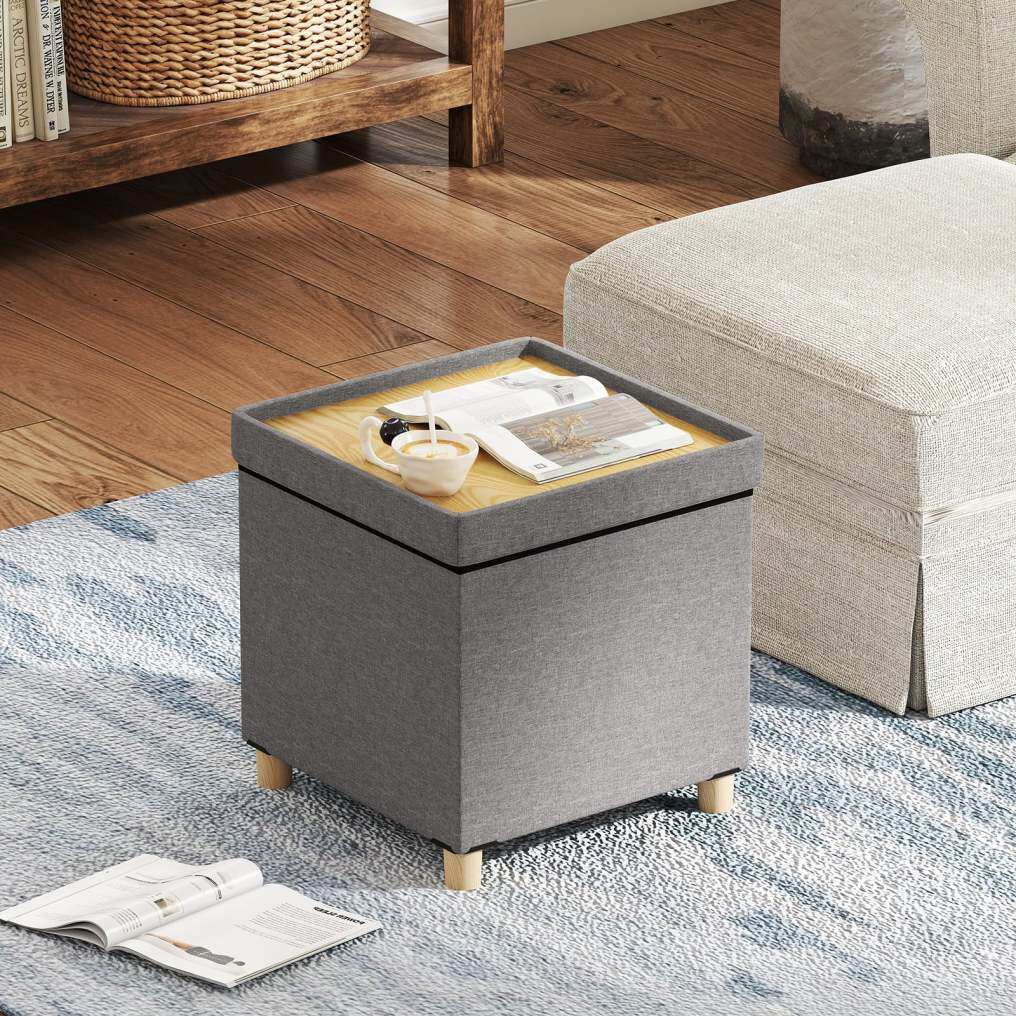 Versatile Flip Top Lid: The footstool’s top lid flips to reveal a wood-grain surface, which is ideal for resting drinks and snacks. Transform it effortlessly into a practical side table/coffee table, enhancing your room’s utility with 1 simple motion.