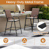 ● Ergonomic Features: Each outdoor barstool features an inclined high backrest that provides excellent back support. The curved armrests offer an ergonomic resting place for your arms and the 11.5" high footrest allows you to stretch your legs.