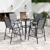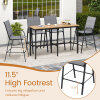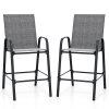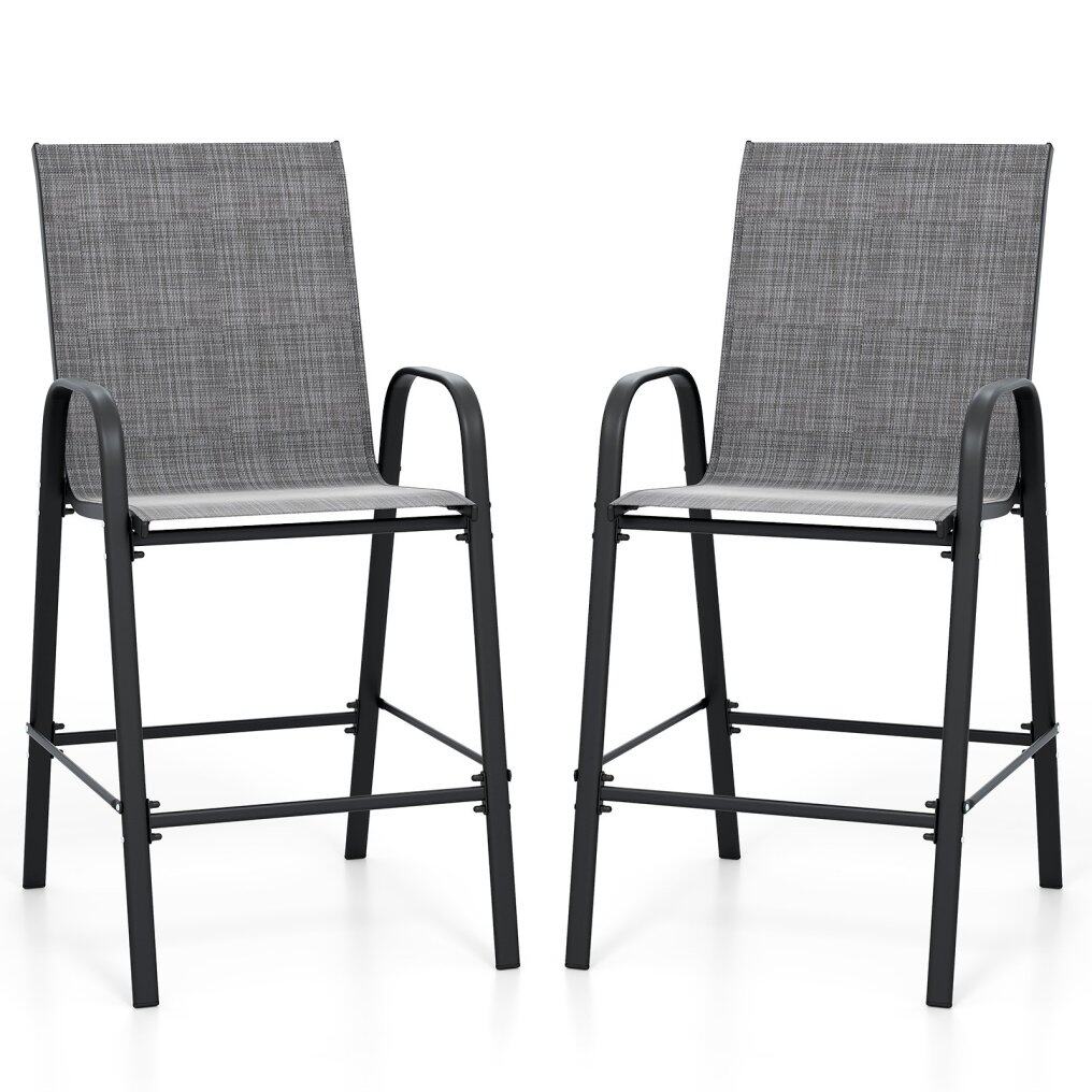 ● Ergonomic Features: Each outdoor barstool features an inclined high backrest that provides excellent back support. The curved armrests offer an ergonomic resting place for your arms and the 11.5" high footrest allows you to stretch your legs.