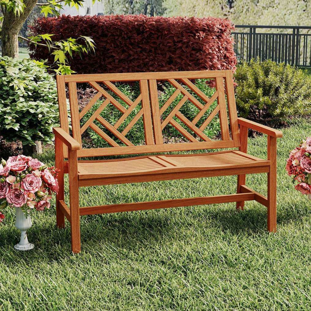 Outdoor Bench Wood 2-Person Patio Loveseat Chair with Geometric Backrest Sourcing Wholesale Supplier/Distributor | B2B Marketplace