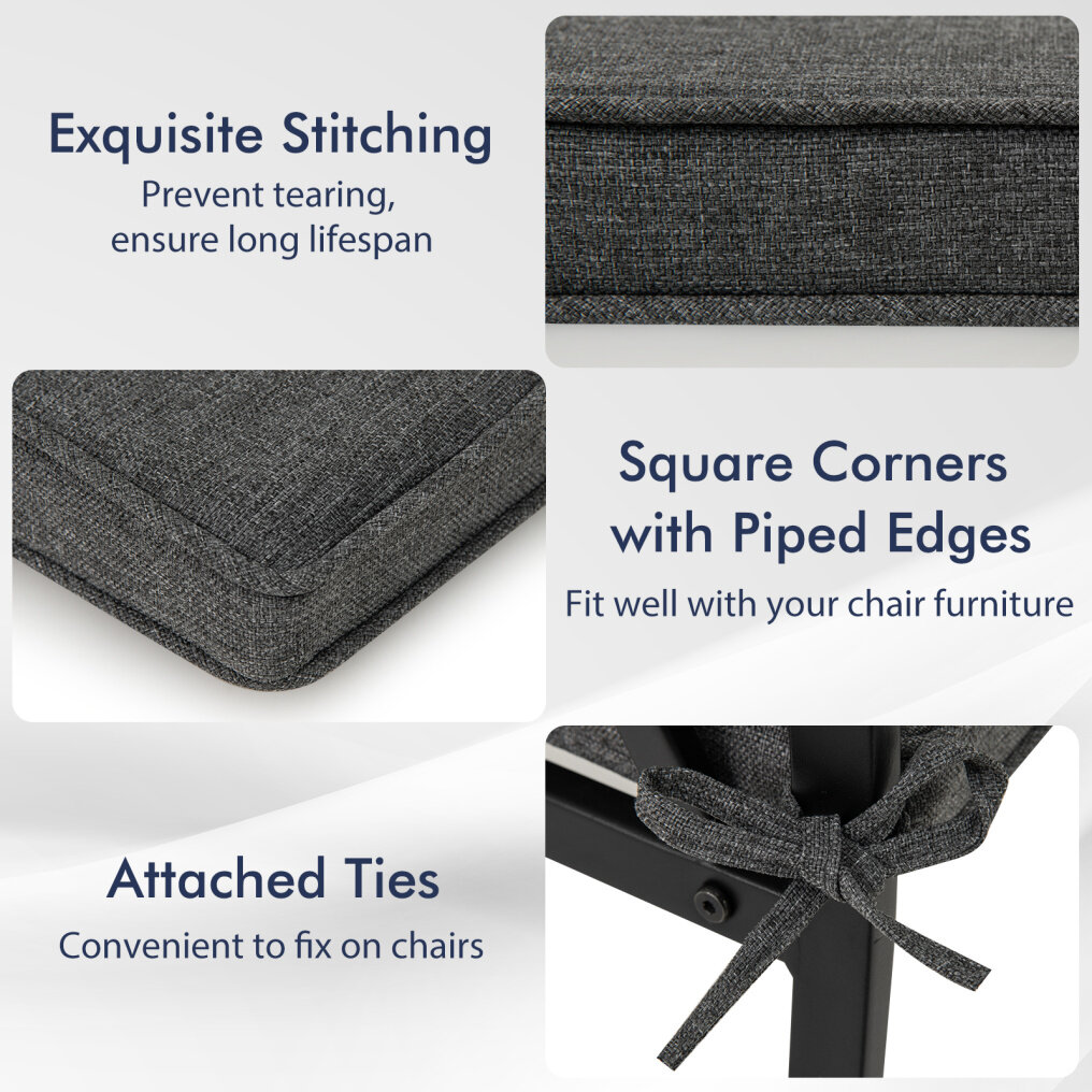 ● Attention to Details: Featuring attached ties, the cushions can be securely attached to your patio furniture while easily detachable. Additionally, they adopt exquisite stitching and square corners with piped edges, providing a sophisticated and tailored look to your outdoor chairs.