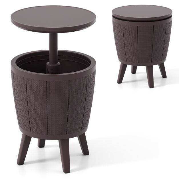 Versatile 2-in-1 Design: This outdoor cooler table features a lift-top design, with the height adjustable from 59 cm as a patio coffee table to 84 cm for comfortable standing as a poolside cocktail table, providing flexibility for various social settings.
