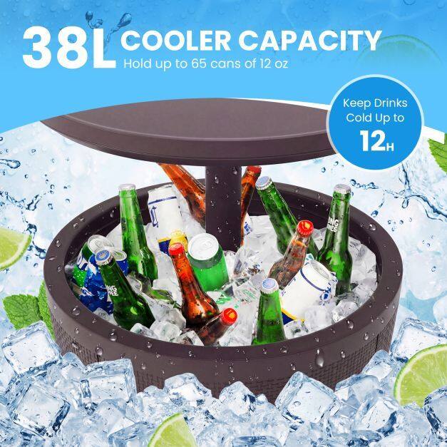 38L Large Capacity: With an 38L capacity, this patio bar table can hold up to 65 cans of 12 oz beverages, making it ideal for storing your beer and wine chilled and ready, perfect for parties without the need for constant trips indoors.