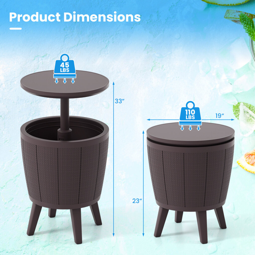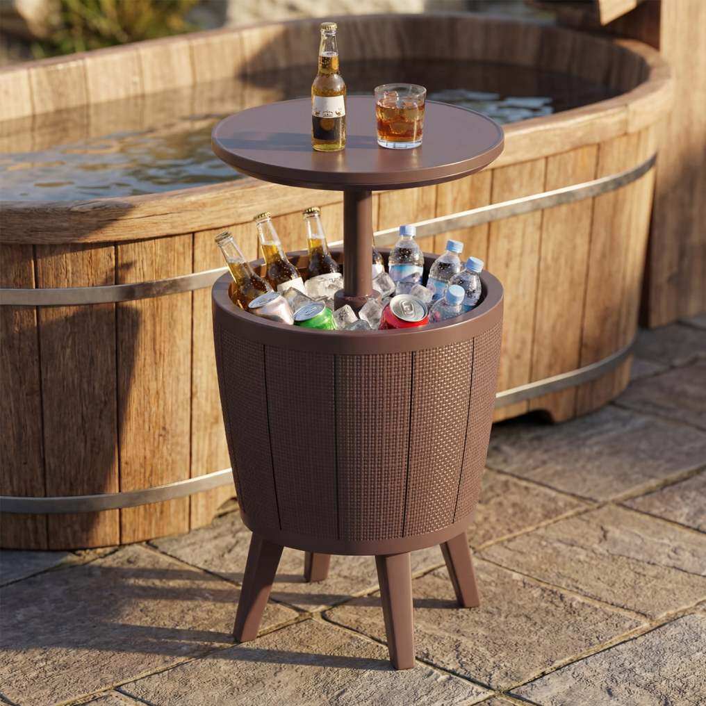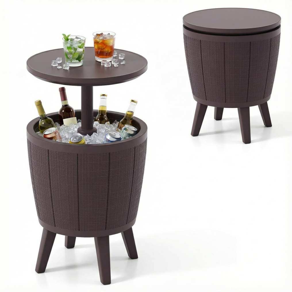 38L Large Capacity: With an 38L capacity, this patio bar table can hold up to 65 cans of 12 oz beverages, making it ideal for storing your beer and wine chilled and ready, perfect for parties without the need for constant trips indoors.