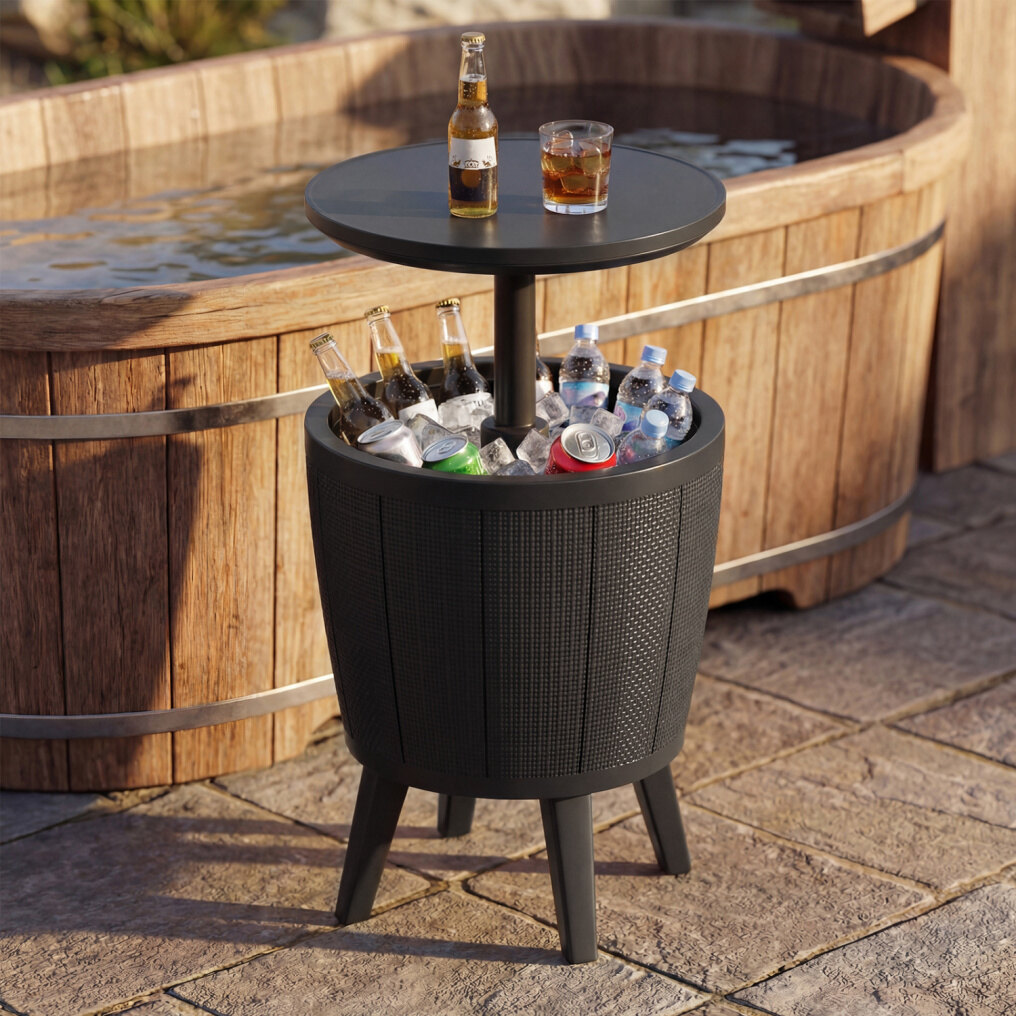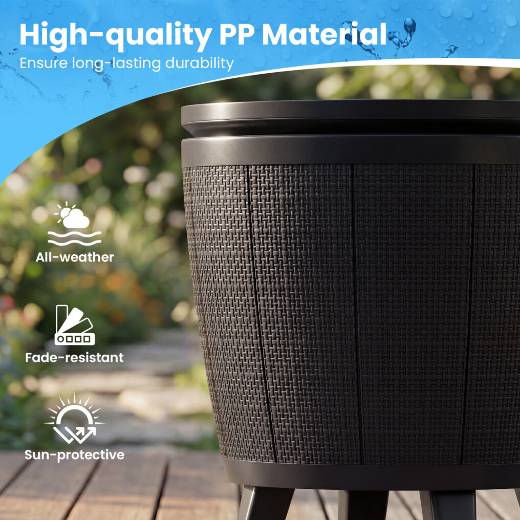 38L Large Capacity: With an 38L capacity, this patio bar table can hold up to 65 cans of 12 oz beverages, making it ideal for storing your beer and wine chilled and ready, perfect for parties without the need for constant trips indoors.