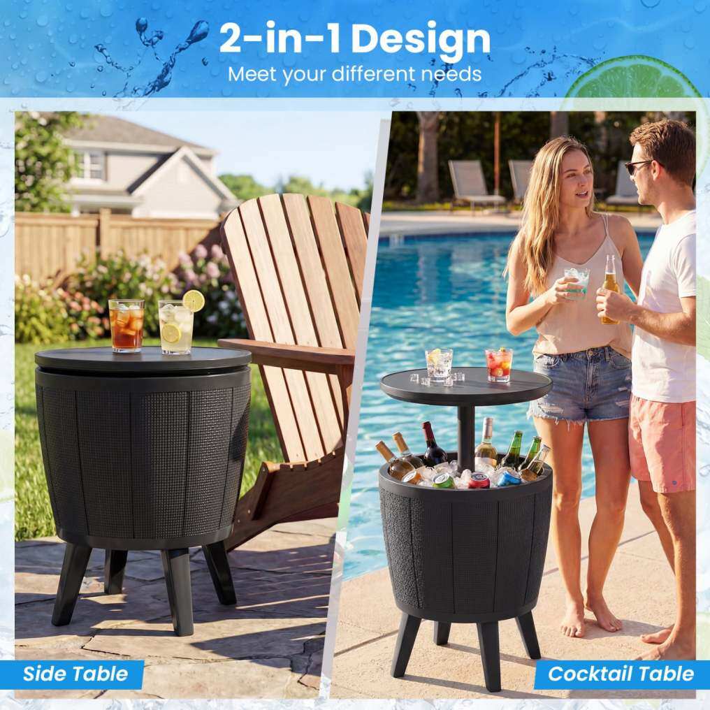 Versatile 2-in-1 Design: This outdoor cooler table features a lift-top design, with the height adjustable from 59 cm as a patio coffee table to 84 cm for comfortable standing as a poolside cocktail table, providing flexibility for various social settings.