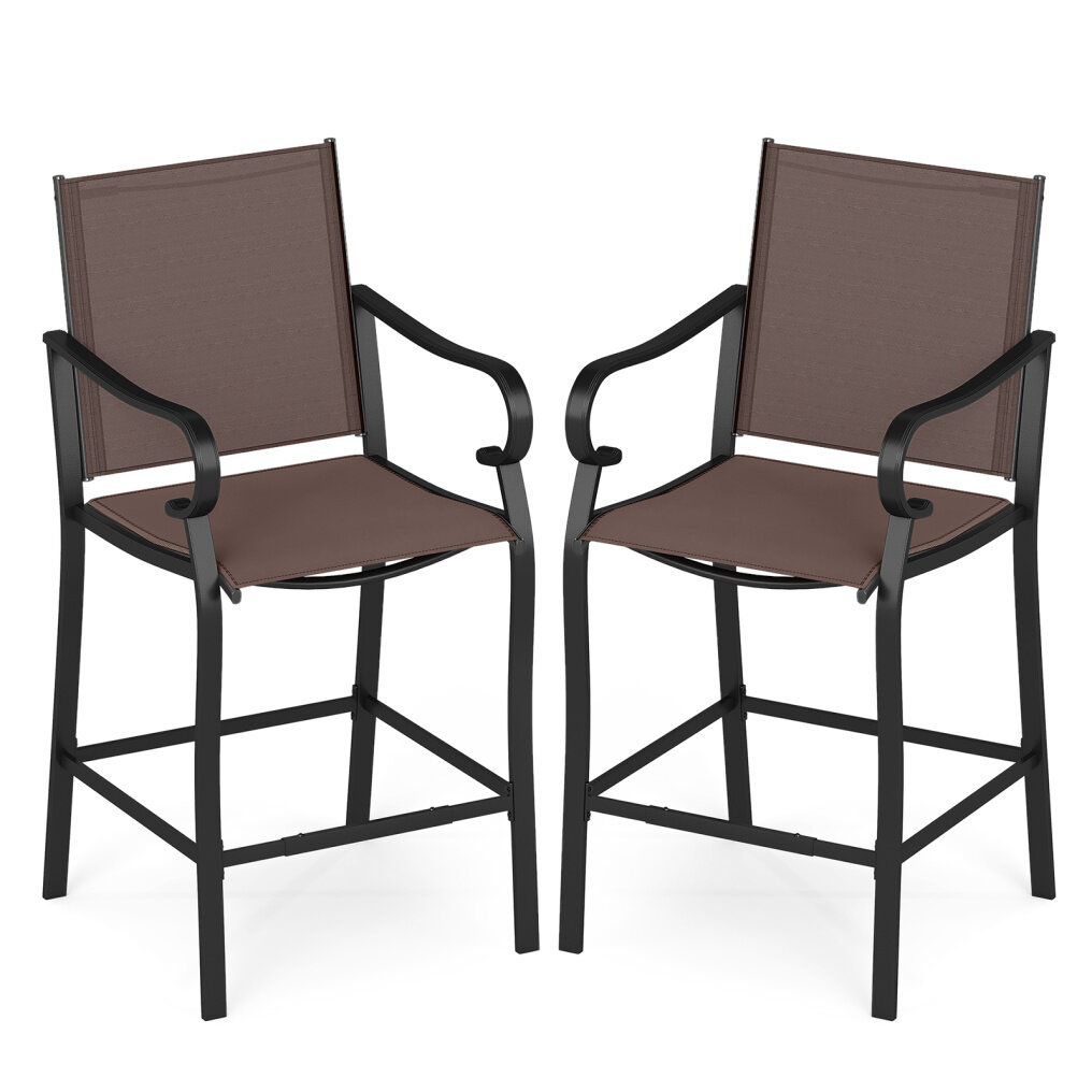 Outdoor Counter Height Bar Stools Set of 2 with Breathable Mesh Fabric
