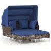 ● Retractable Canopy: The outdoor daybed features a retractable canopy, allowing you to open it for cool, shaded comfort or close it for full sunbathing. Moreover, the fixing ties keep the canopy secure when closed.